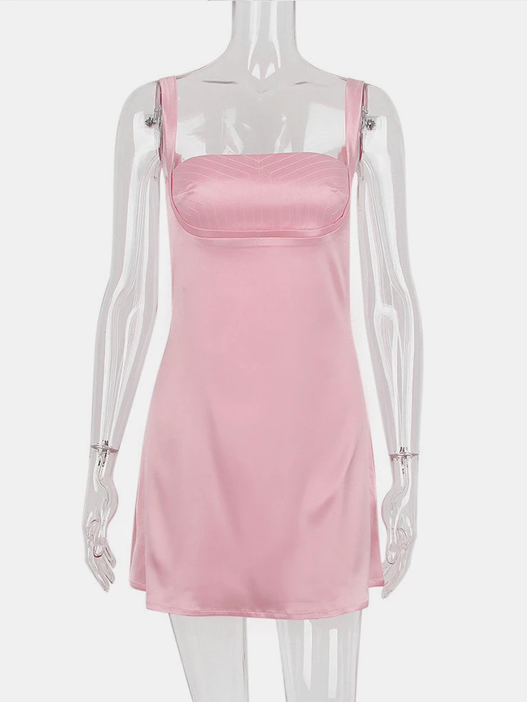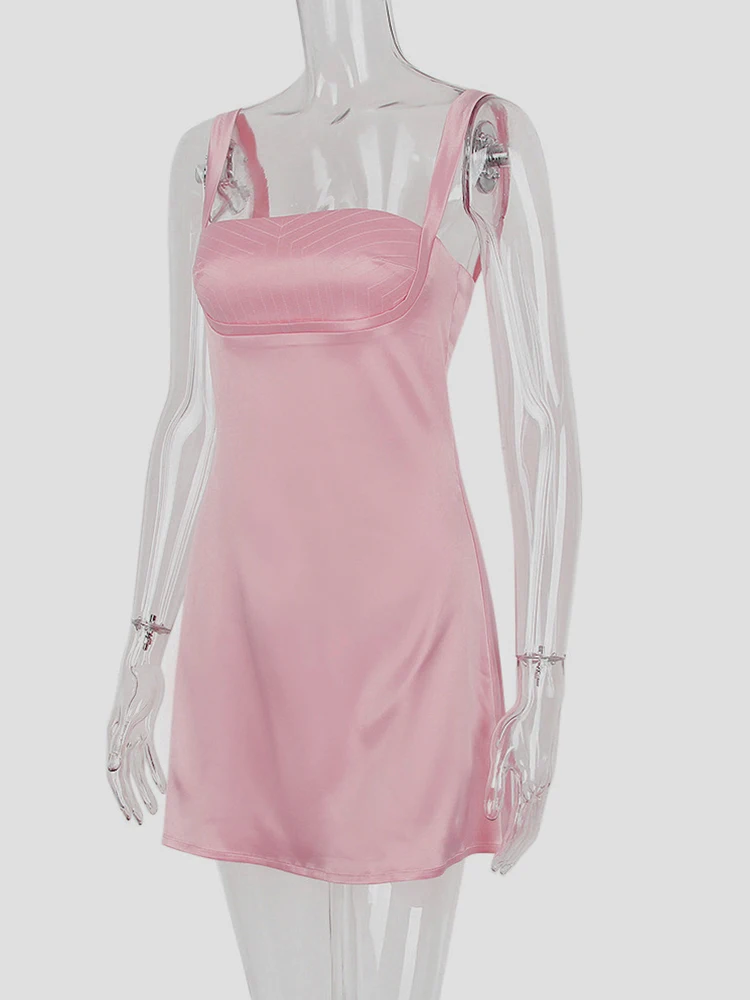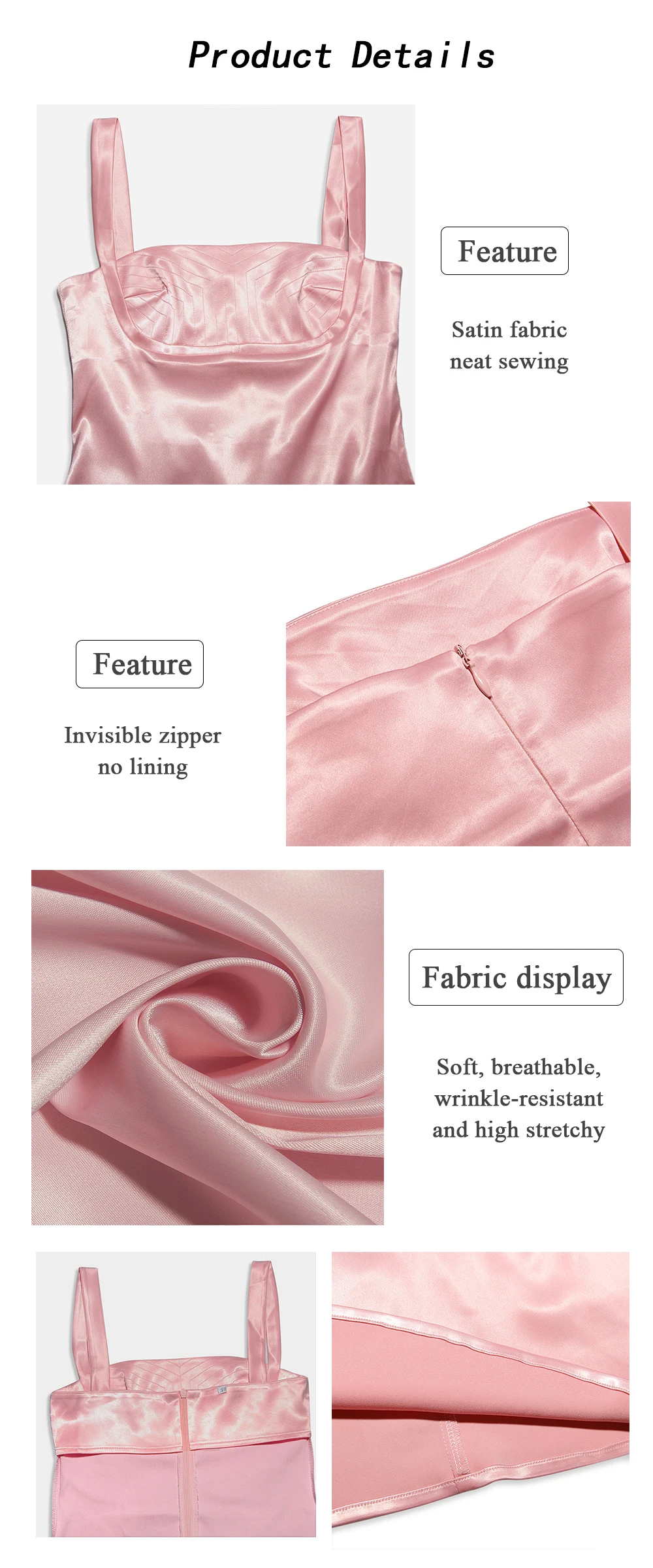 Birthday Dress for Women A-Line Pink Dress Sexy Satin Party Dresses Mini Casual Spaghetti Strap Graduation Dress