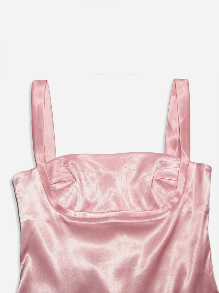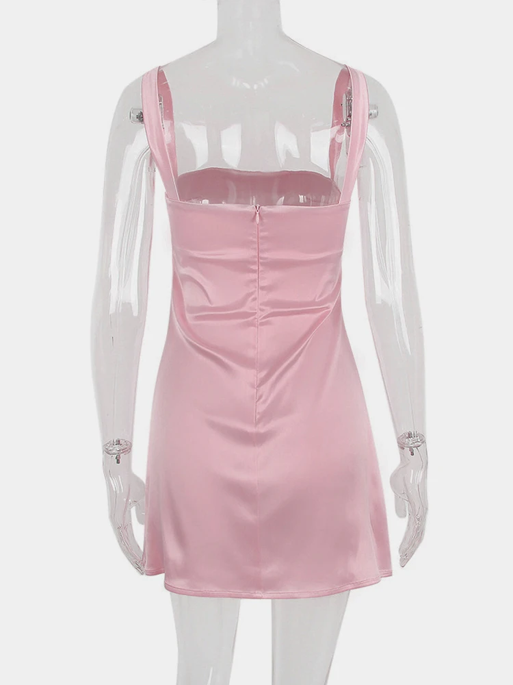 Feminine and elegant, our mini dress has a romantic feel. Crafted in our lustrous, ultra-light Duchess Satin in the prettiest shade of pink, it drapes effortlessly on curves. We love the flowy feel because it spreads lightly at the hem. It's comfort and has a zipper on the back for easy on and off. Wear yours with sandals for a romantic summer day.