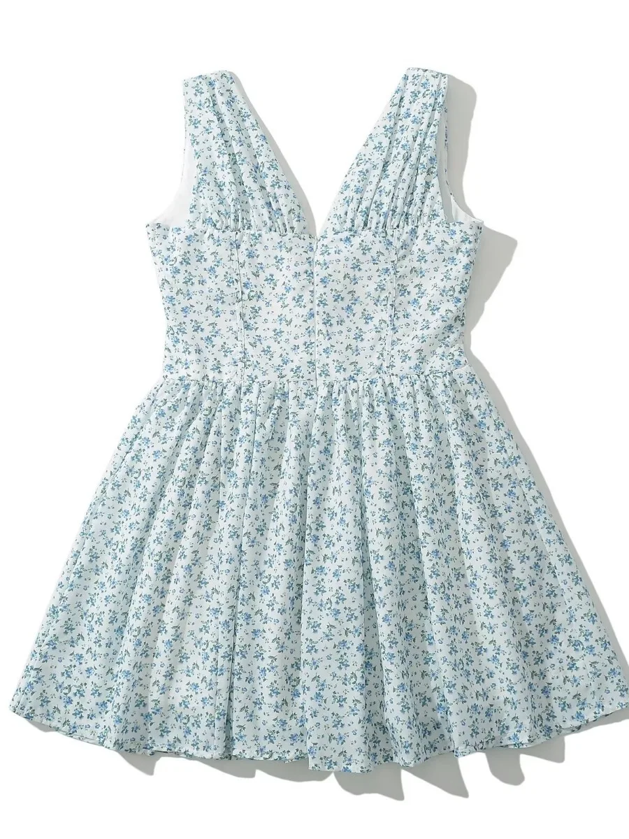 Fashion Summer Tulle Skirt for Women Mini V Neck Sexy Party Dresses Print Holiday Women's Clothing