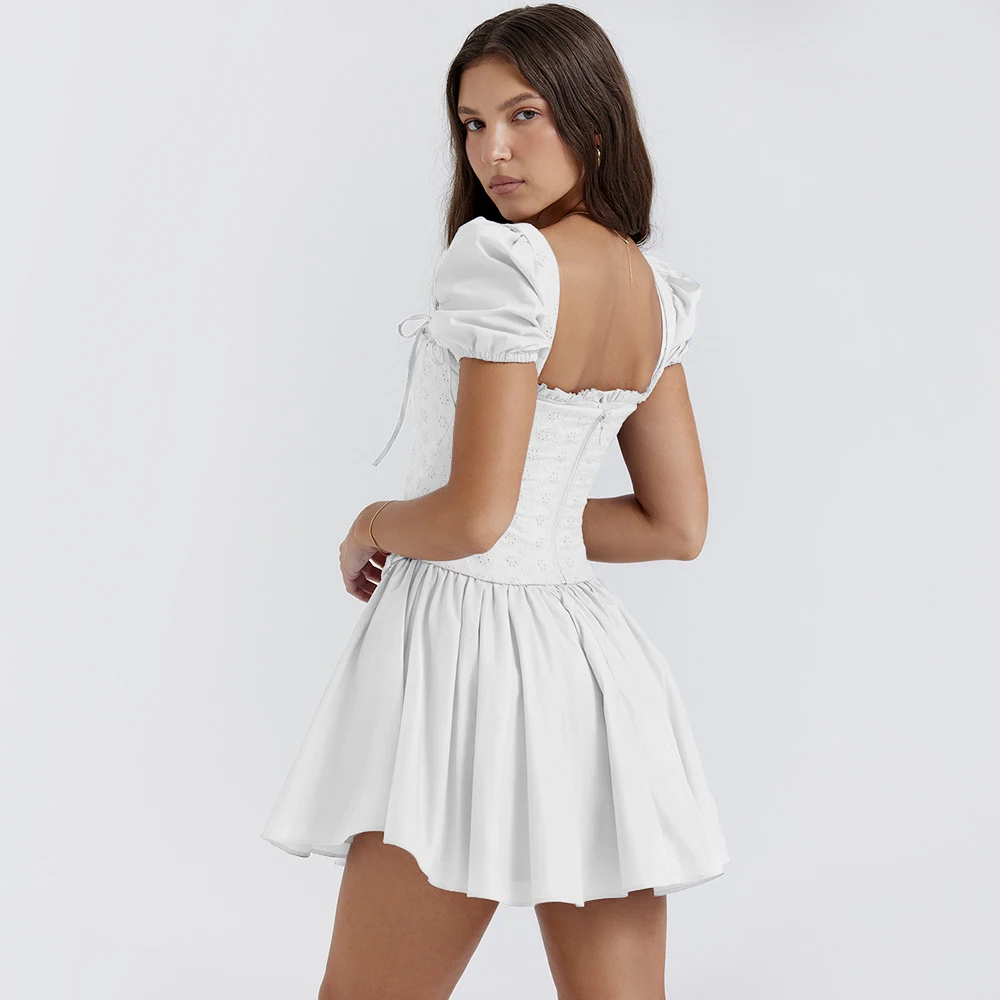 Summer Detachable Puff Sleeve Corset Dress Mini Elegant Blue Square Neck Dress Casual Women Holiday Party Dress