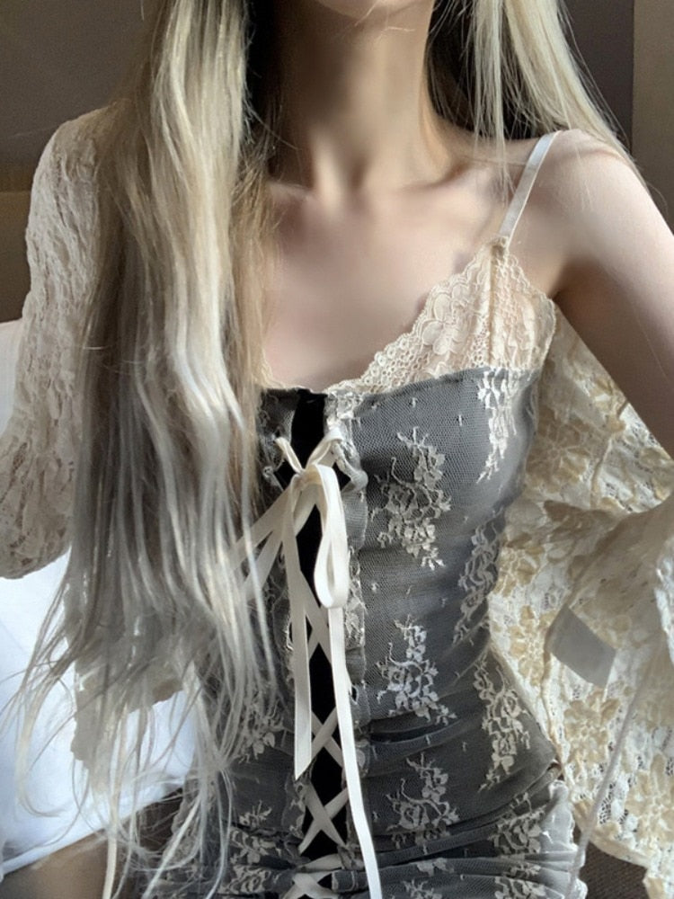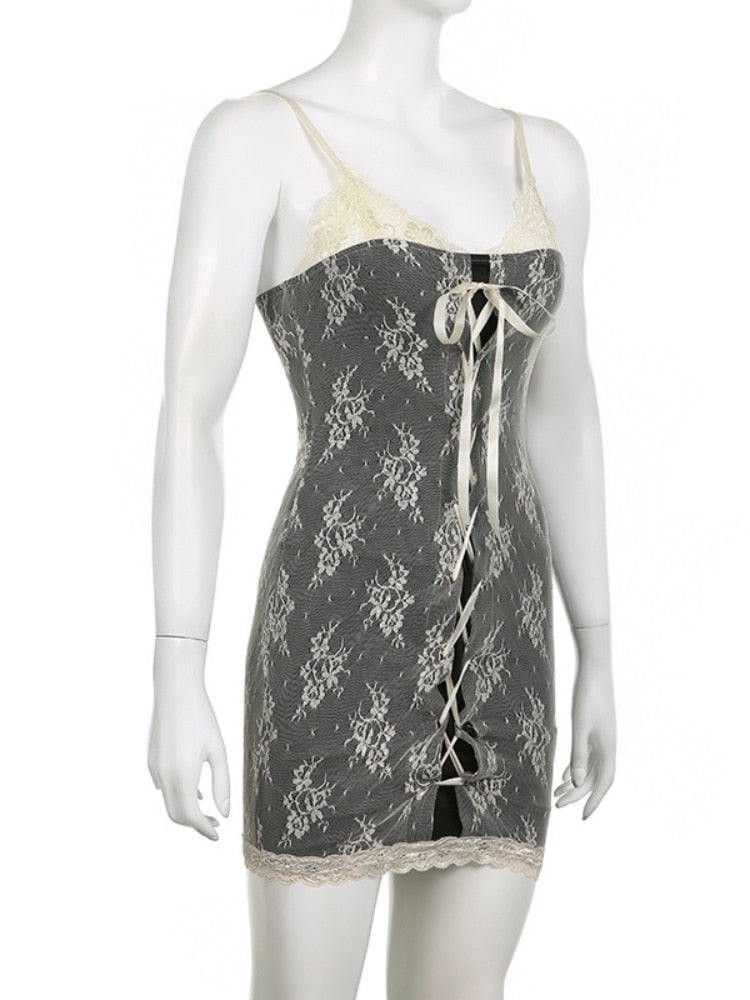 Mini Dresses Sexy Bandage Sundress Jacquard Summer Dress Women Lace Bodycon Dress Korean Fashion Y2k Clothes Women