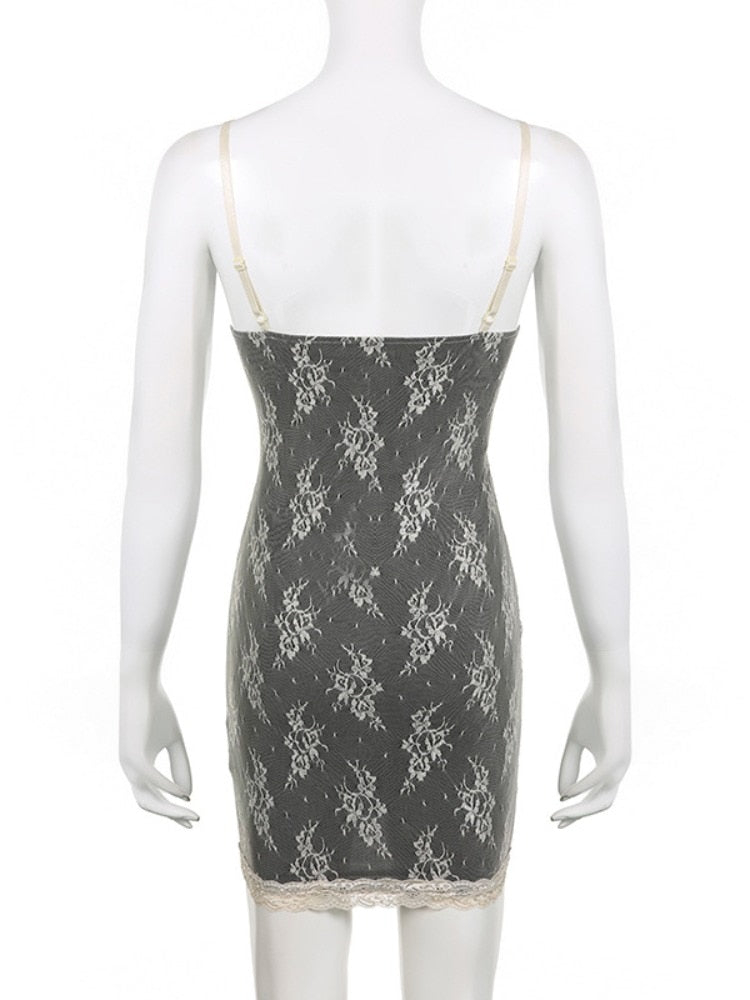 maoxiangshop Mini Dresses Sexy Bandage Sundress Jacquard Summer Dress Women Lace Bodycon Dress Korean Fashion Y2k Clothes Women