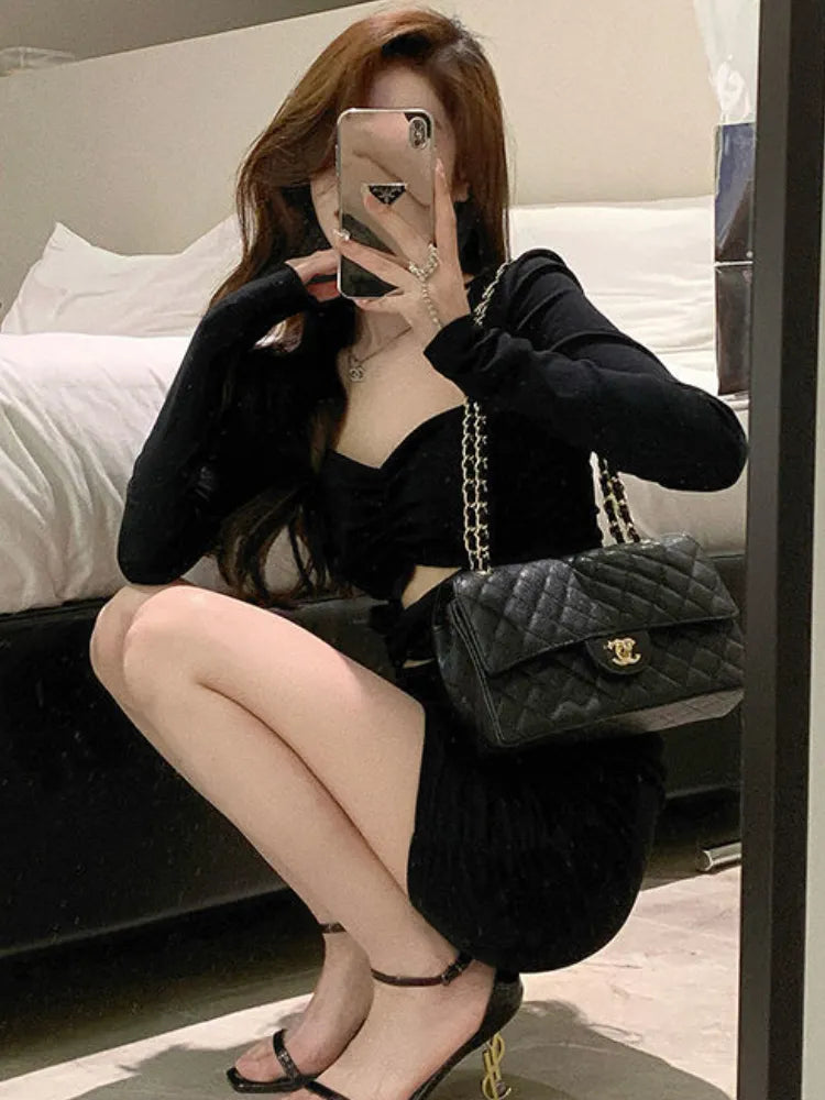 maoxiangshop Mini Dresses Women Sexy Slim Design Hot Girls Creativity Spring Folds Simple Chic Pure Club Ulzzang Leisure Vestidos Personality