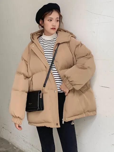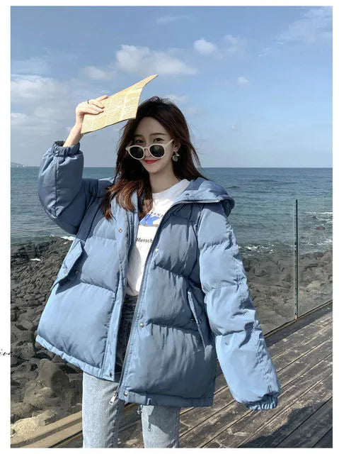 New Women Short Jacket Winter Thick Hooded Cotton Padded Coats Female Korean Loose Puffer Parkas Ladies Oversize Outwear