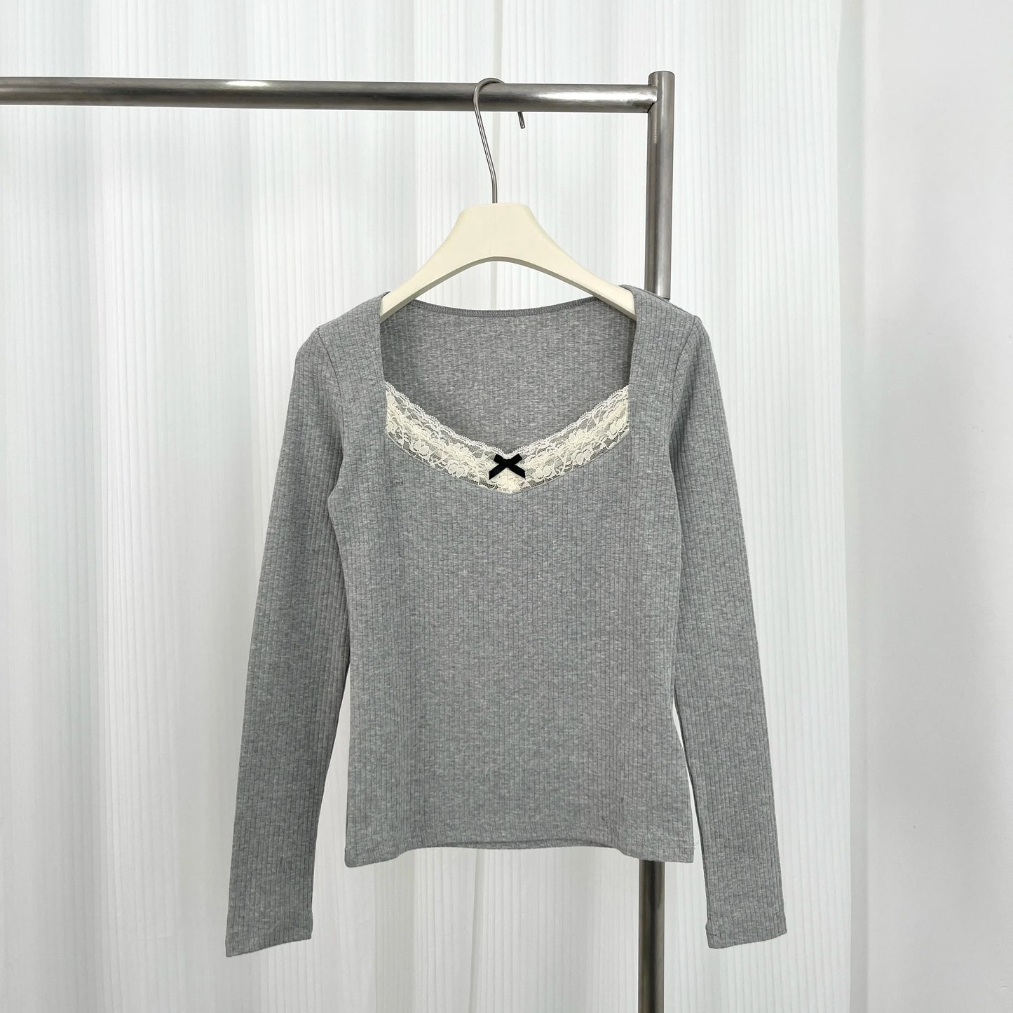 maoxiangshop New Autumn Winter Women Solid Slim Y2k Sweater Pull Fashion Grey Long Sleeved Bow Knitwears Pullovers Clothing Jumper Blouse