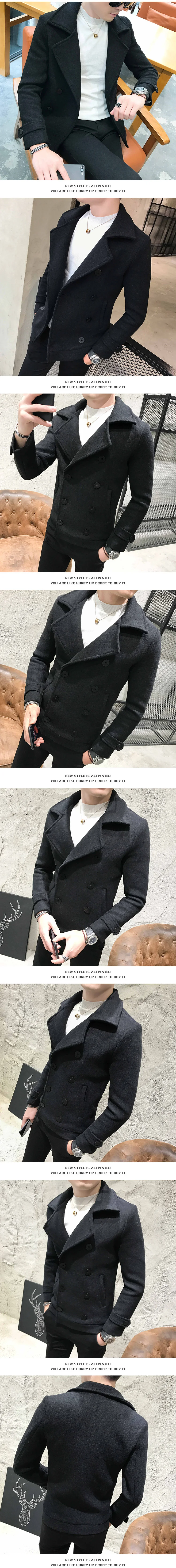 New Fashion Men Double-Breasted Windbreaker Solid Color Slim Short Woolen Coat Winter Casual Warm Windbreaker Coat Size 5XL
