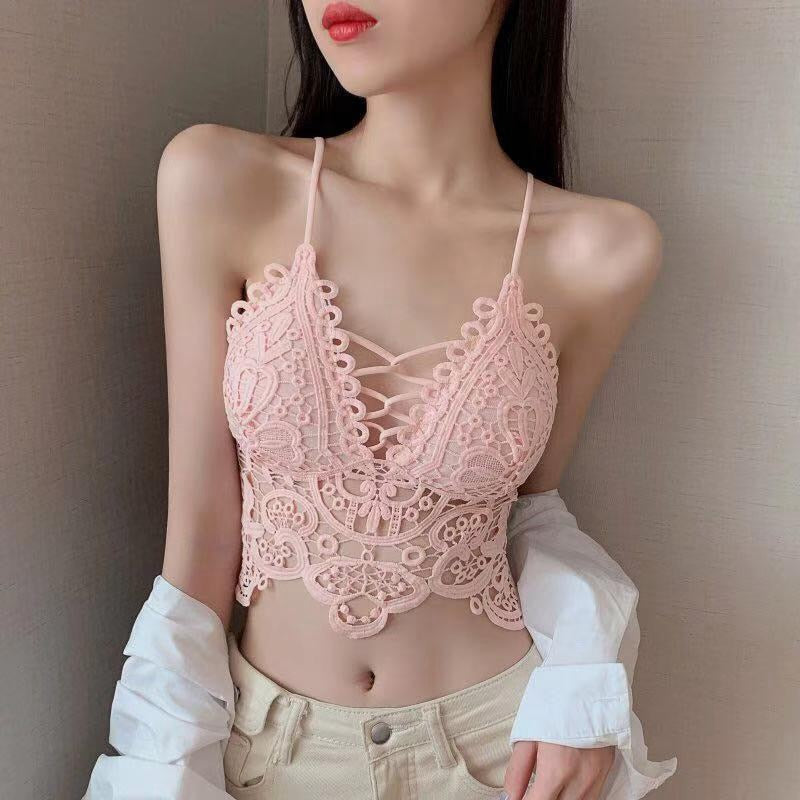 New Women Hollow Out Bralette Solid Color Beauty Back Lace Underwear Sexy Vest Female Add Pad Wireless Bra Suspender Top