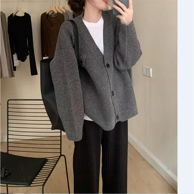 New Women's Sweaters Fashion Loose All-match Knitwear Coats 2023 Spring Autumn Korean Lazy Style V-neck Single-breasted Top