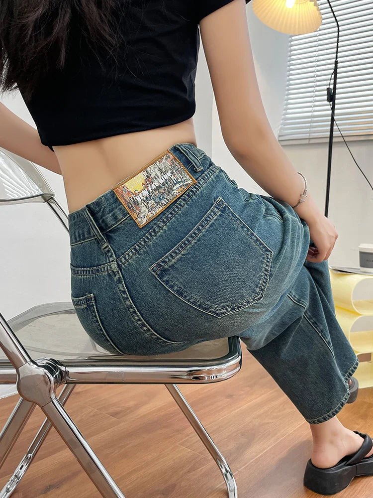 maoxiangshop Women Jeans New Straight Leg Wide Streetwear High Waist Boyfriend Pockets Denim Trousers Cargo Pants Japanese Y2k