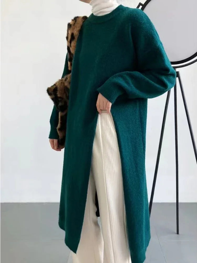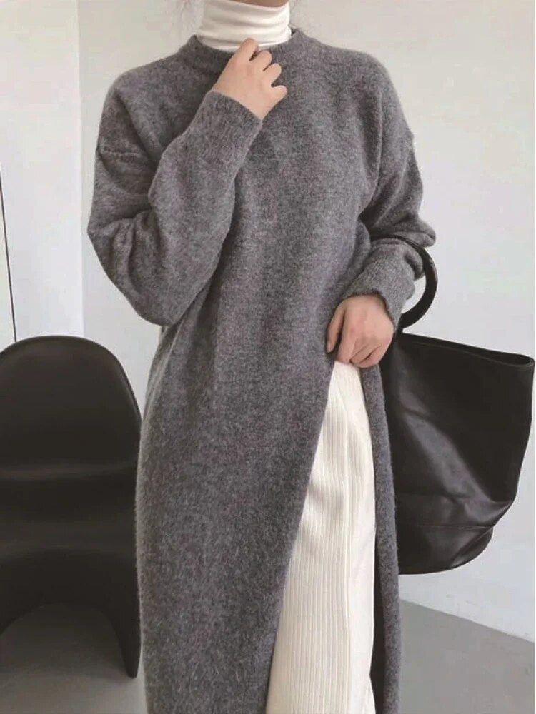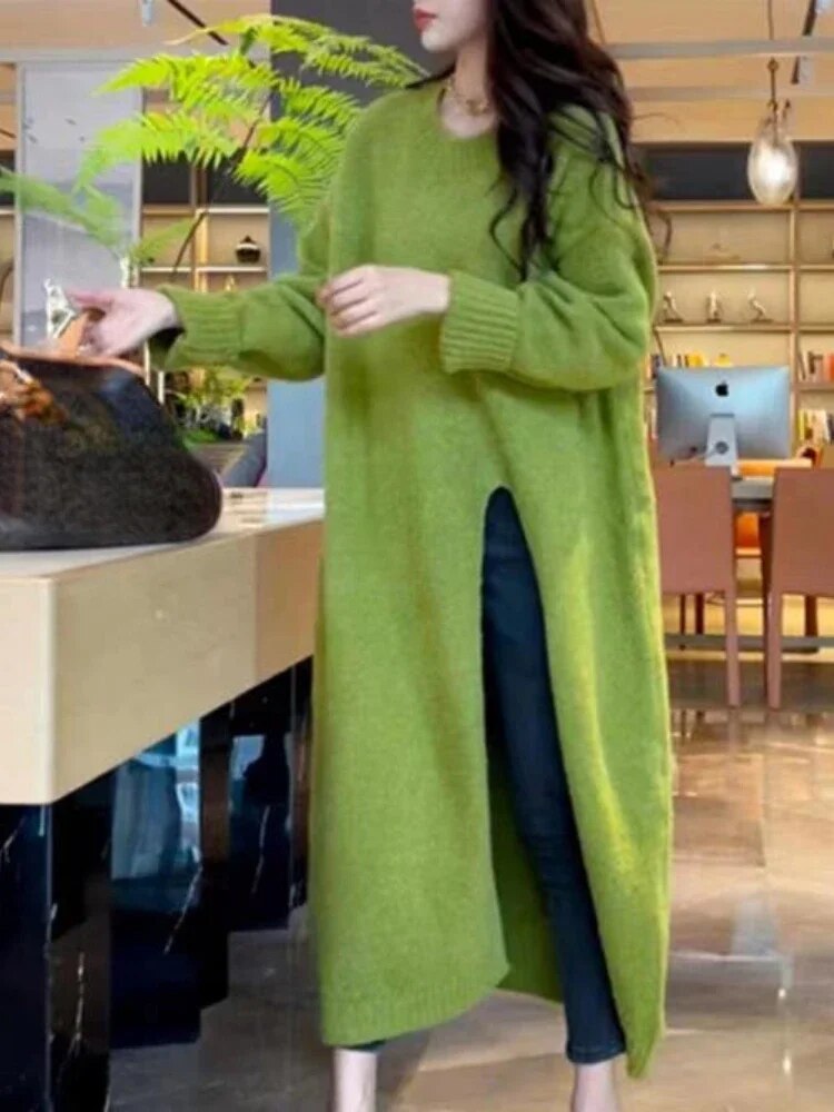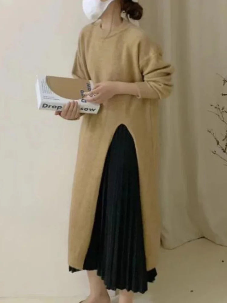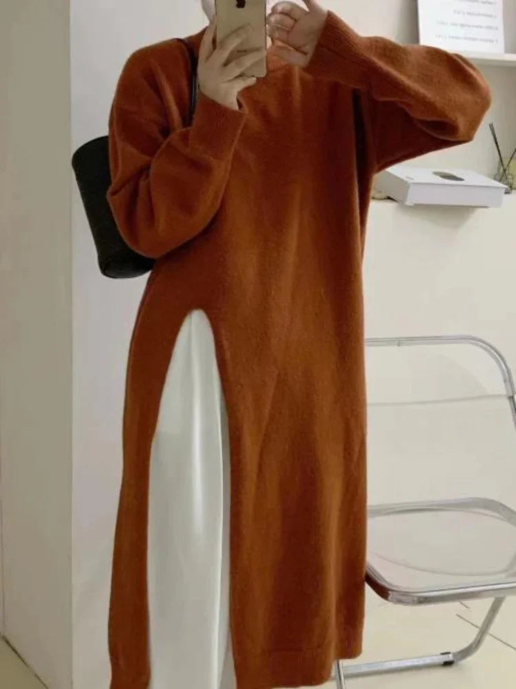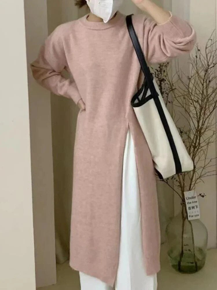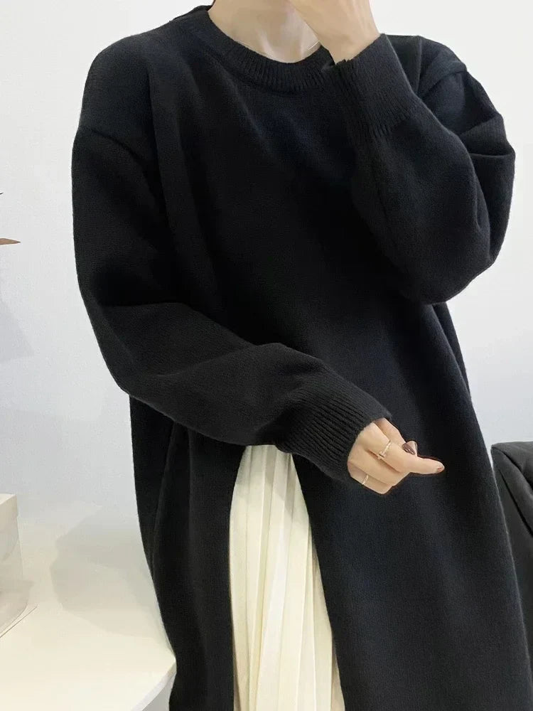 Oversized Sweater Pullover Long Sweater Women Dress New Korean Fashion Long Sleeve Top Side Slit O Neck Autumn Sweater Dress