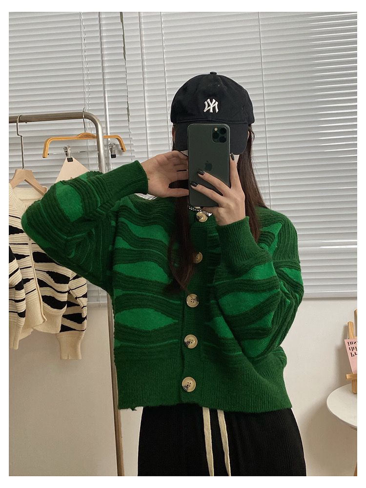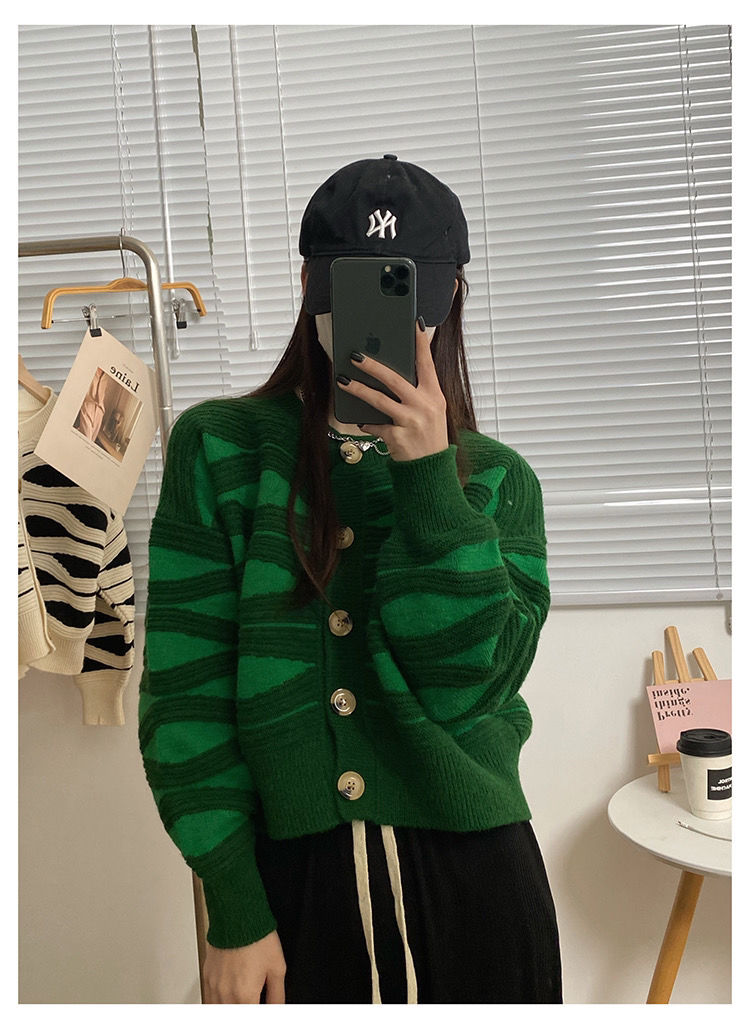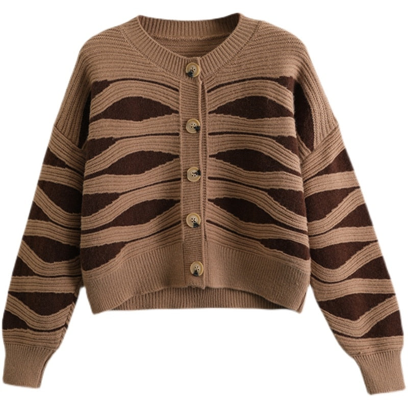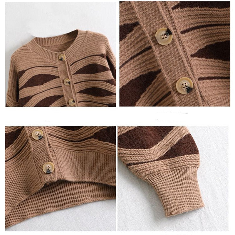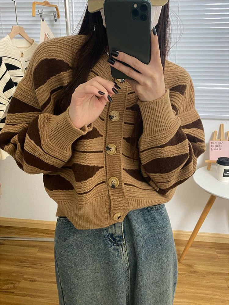 Oversized Sweaters for Women Autumn Knitted Cardigan Winter Striped Loose Jacket Long Sleeve Crop Tops Y2k Cardigan for Girls
