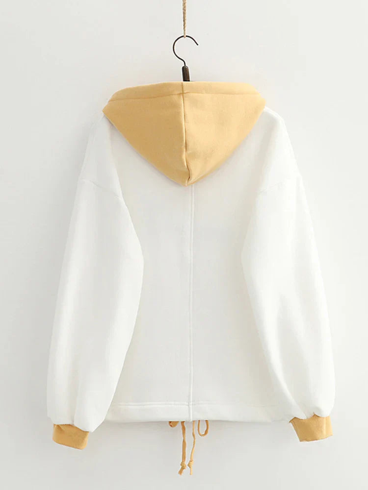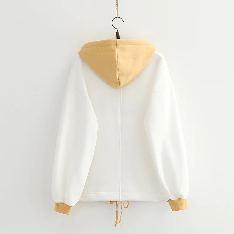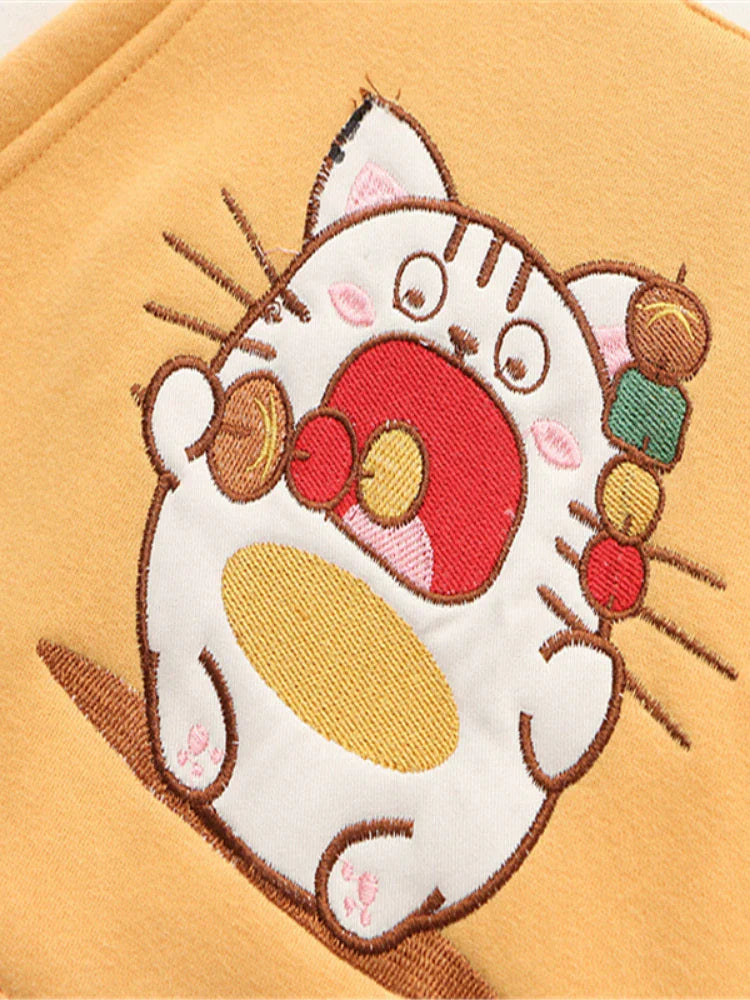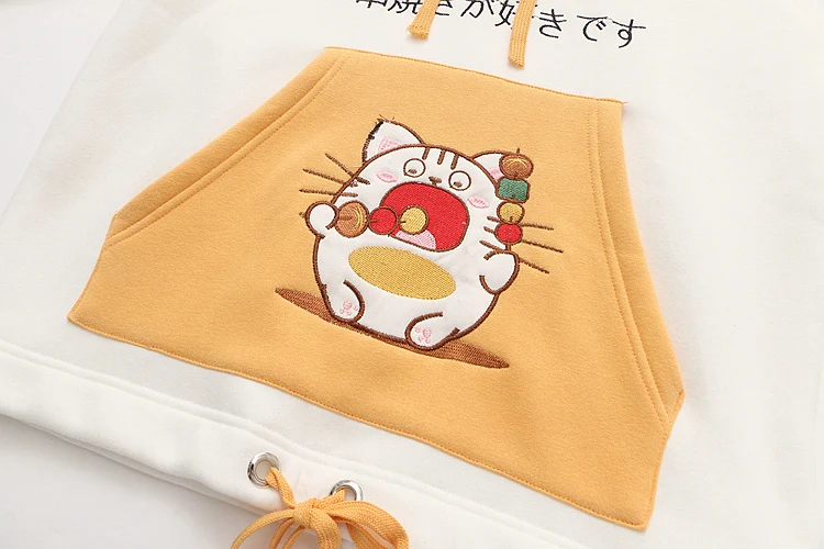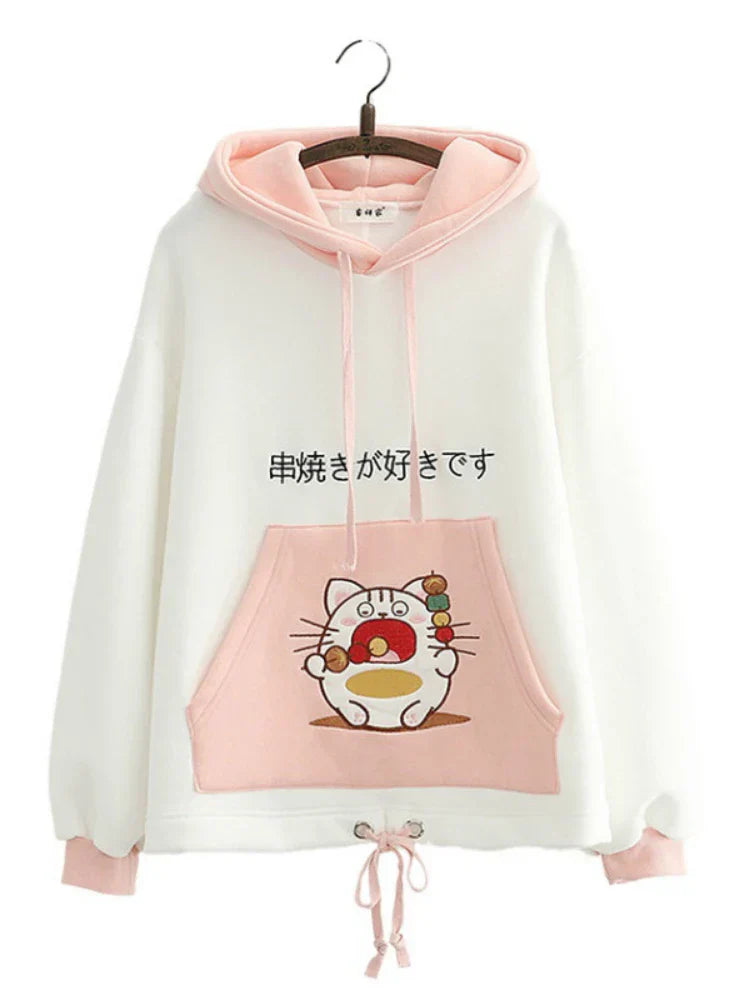 Pink Cartoon Cat Embroidery Cute Women Hoodies Winter Drawstring Long Sleeve Hoded Sweatshirts Sweet Style Ladies Tops