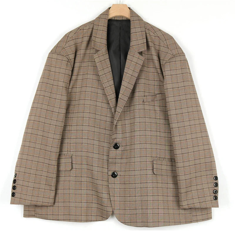 Plaid Blazer Men Oversized Fashion Society Mens Dress Jacket Korean Loose Casual Suit Jacket Mens Office Formal Jackets M-2XL