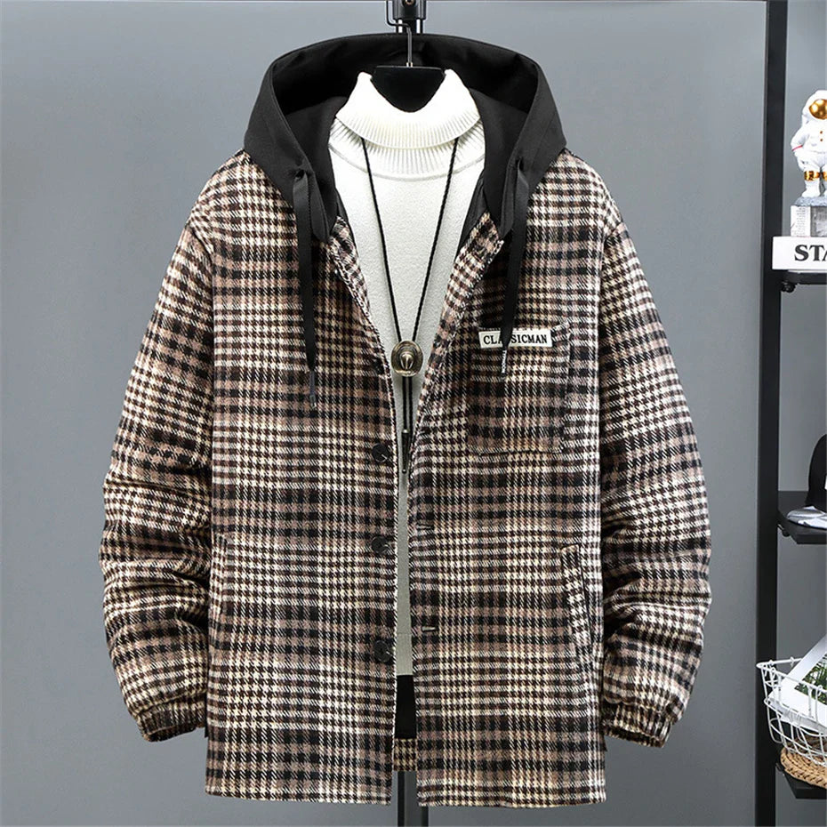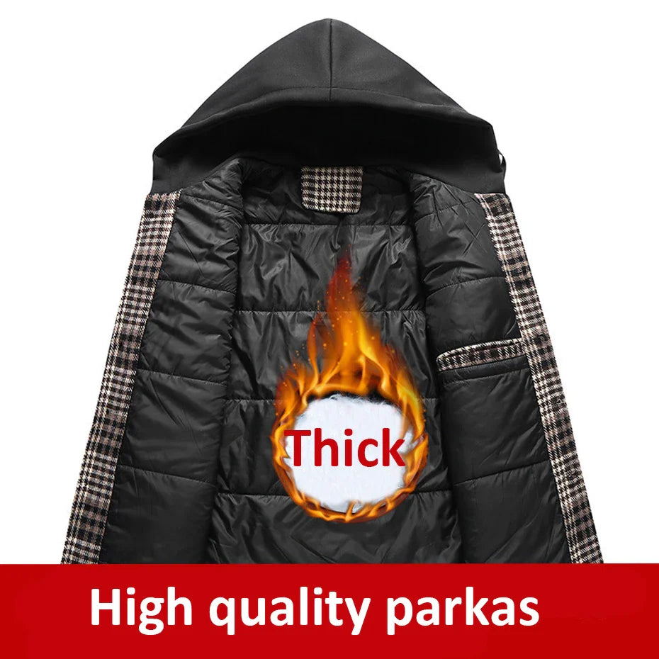 maoxiangshop Plus Size 10XL 11XL Plaid Parkas Men Winter Thick Jacket Coat Plaid Fashion Casual Winter Hooded Jackets Big Size 11XL 10XL Male
