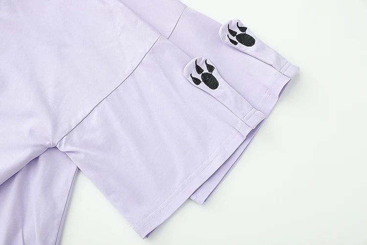 maoxiangshop Purple Cartoon Embroidery Kawaii Hoodies Cotton Hooded Sweatshirt Women Summer Sweet Style Korean Female Short Sleeve Tops