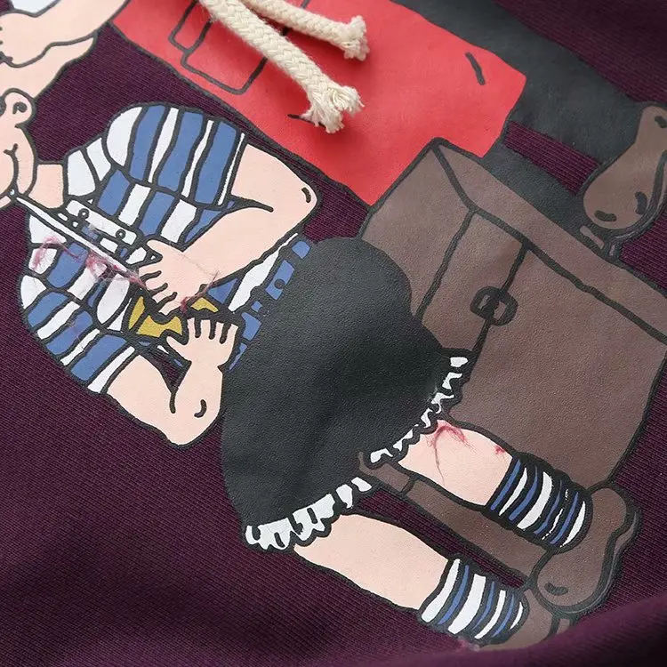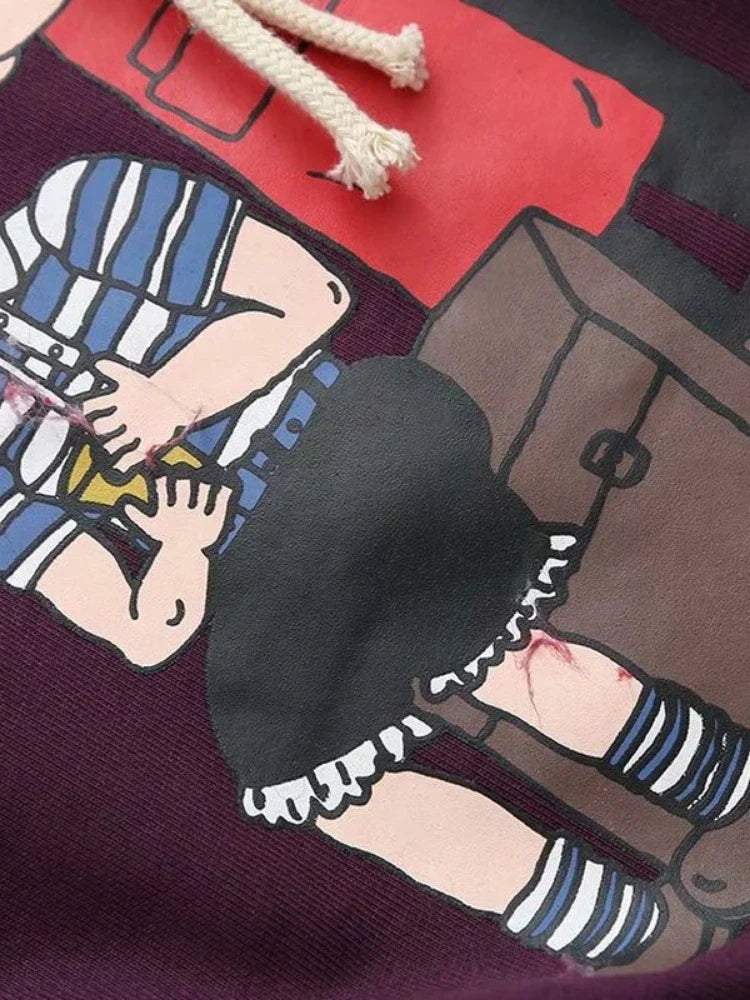 maoxiangshop Purple Cartoon Print Women Hooded Sweatshirt Autumn Winter Girl Sporty Chic Hoodies Sweet Style Casual Pullover Tracksuits
