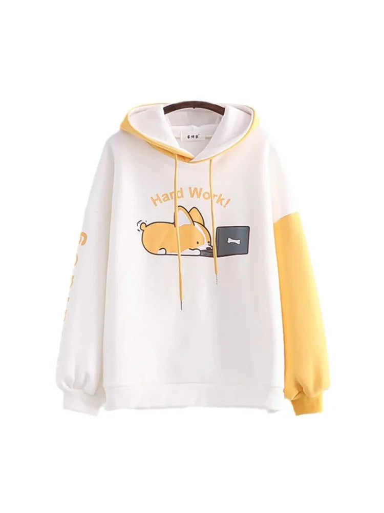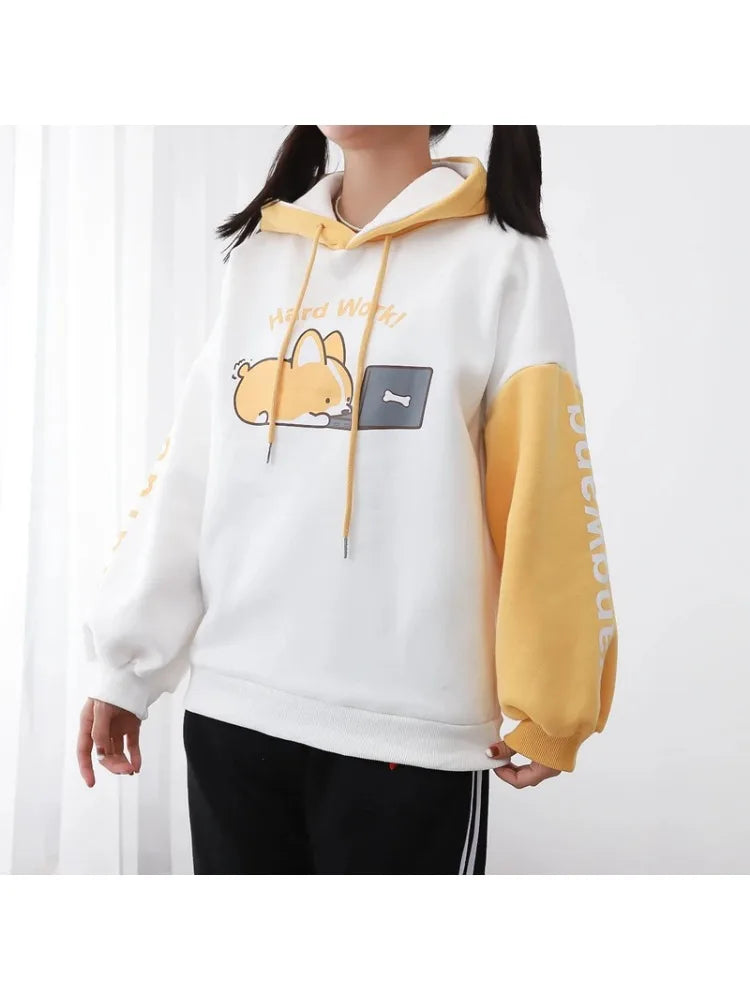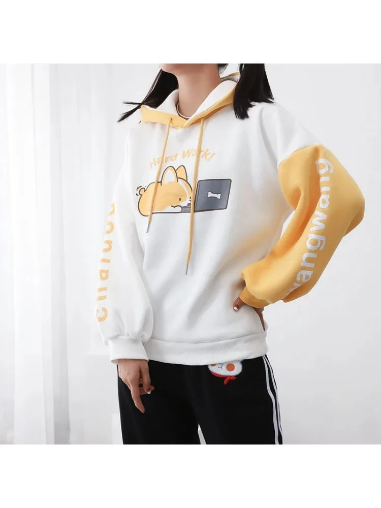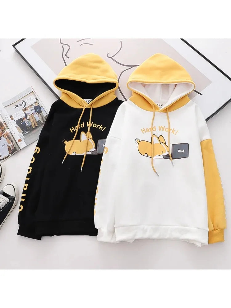 Shiba Inu Print Kawaii Women Hoodies Chic Drawstring Harajuku Cute Hooded Sweatshirts Winter Long Sleeve Female Sweet Tops