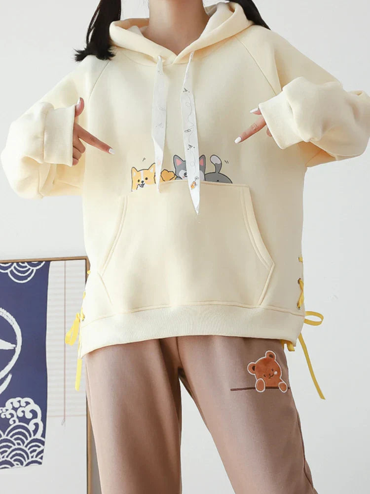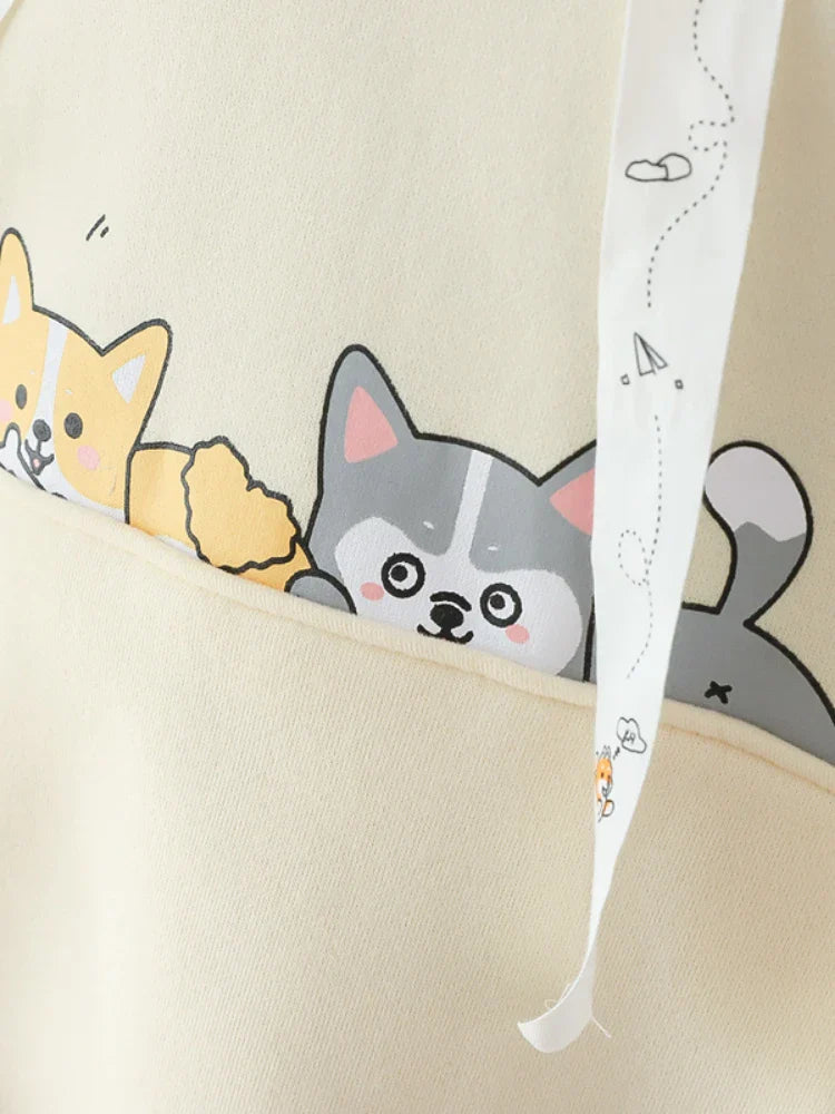 Shiba Inu Print Kawaii Women Hoodies Chic Drawstring Harajuku Cute Hooded Sweatshirts Winter Long Sleeve Female Sweet Tops
