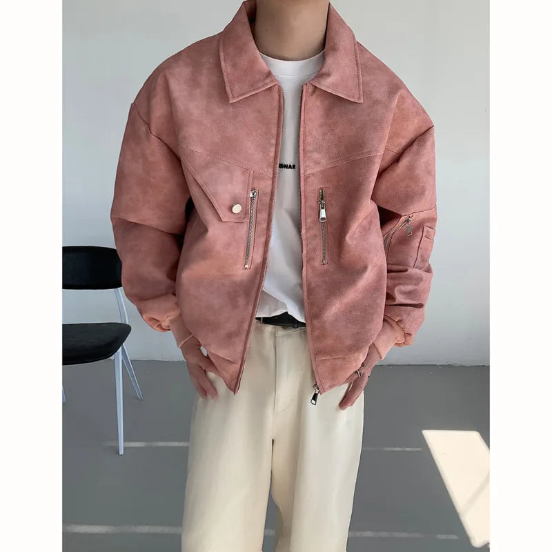 Short Leather Jacket Men Oversized Fashion Casual Motorcycle Jackets Men Streetwear Hip-hop Loose Bomber Jacket Mens Outwear