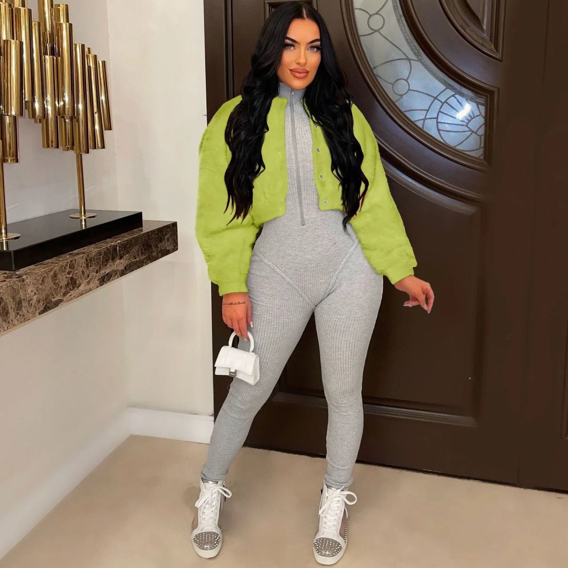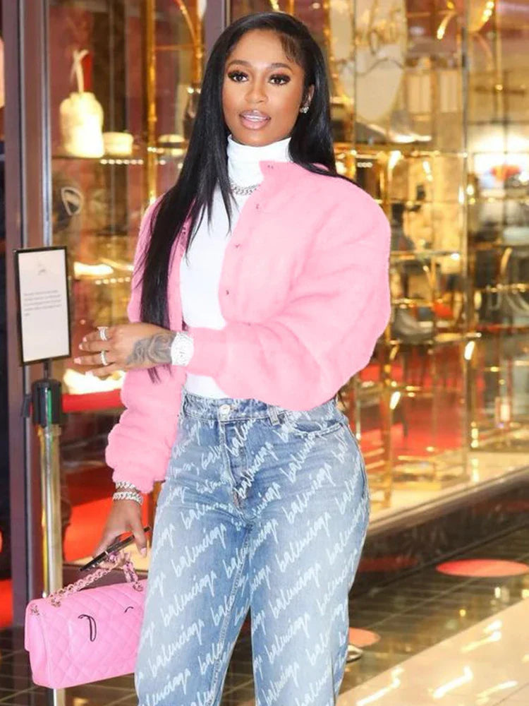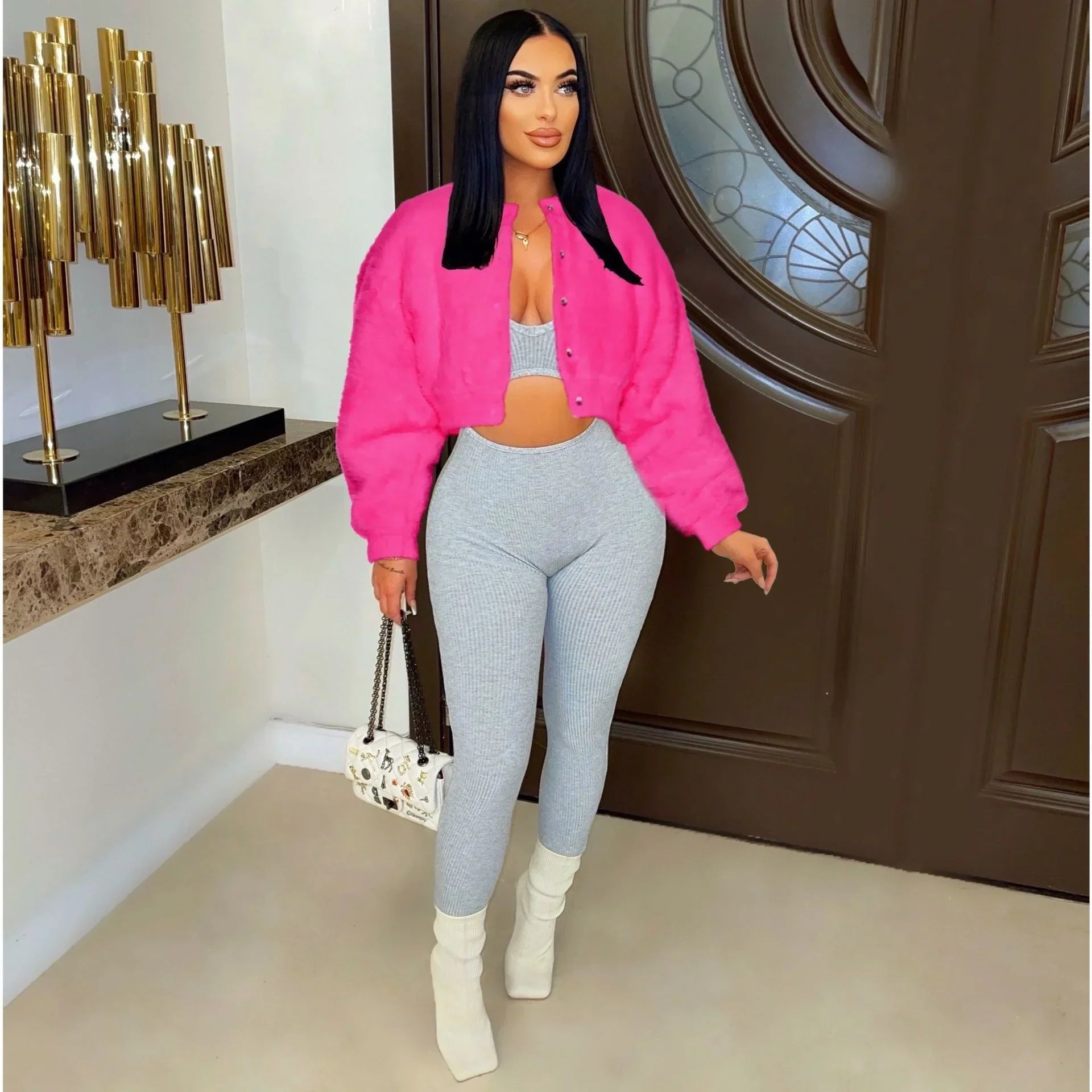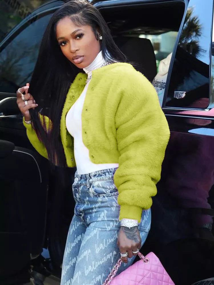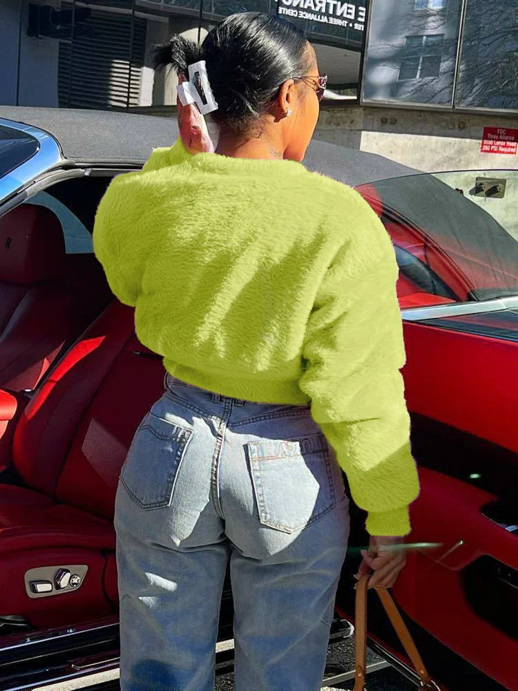 Sifreyr Faux Fur Solid Cropped Coat Women Fashion Imitation Rabbit Fur Long Sleeve Jackets Casual Streetwear Loose Cardigan Tops