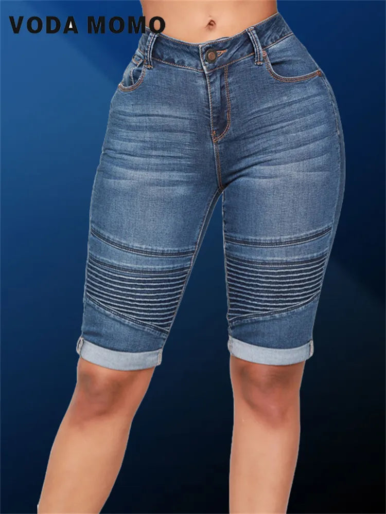 Skinny Jeans for Women High Waist Stretch Denim Trousers Mom Jeans Knee Length Pencil Pants Casual Comfort Trousers Oversize