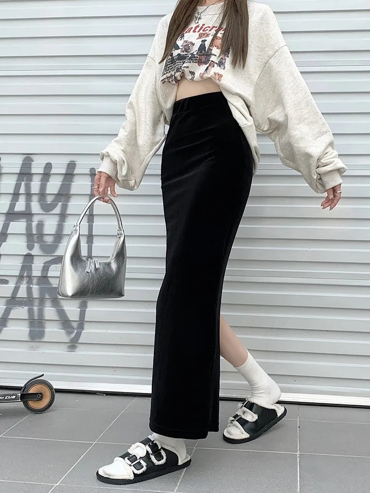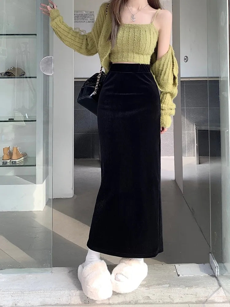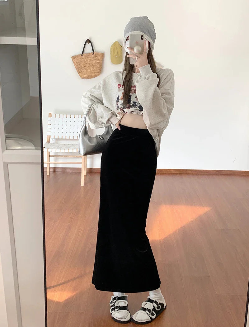 maoxiangshop Fish Tail Velvet Skirt Women Mermaid Trumpet Long Skirts Ankle Length Empire High Waist Skinny Bodycon Skirt Female