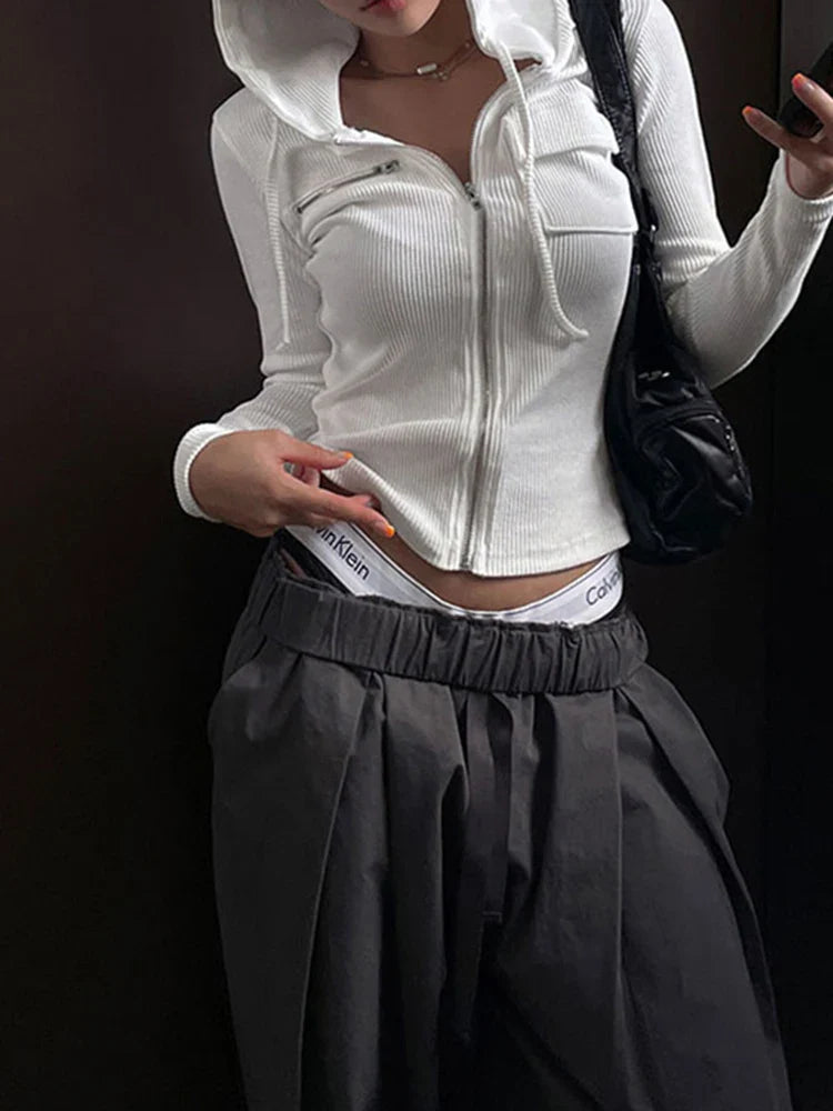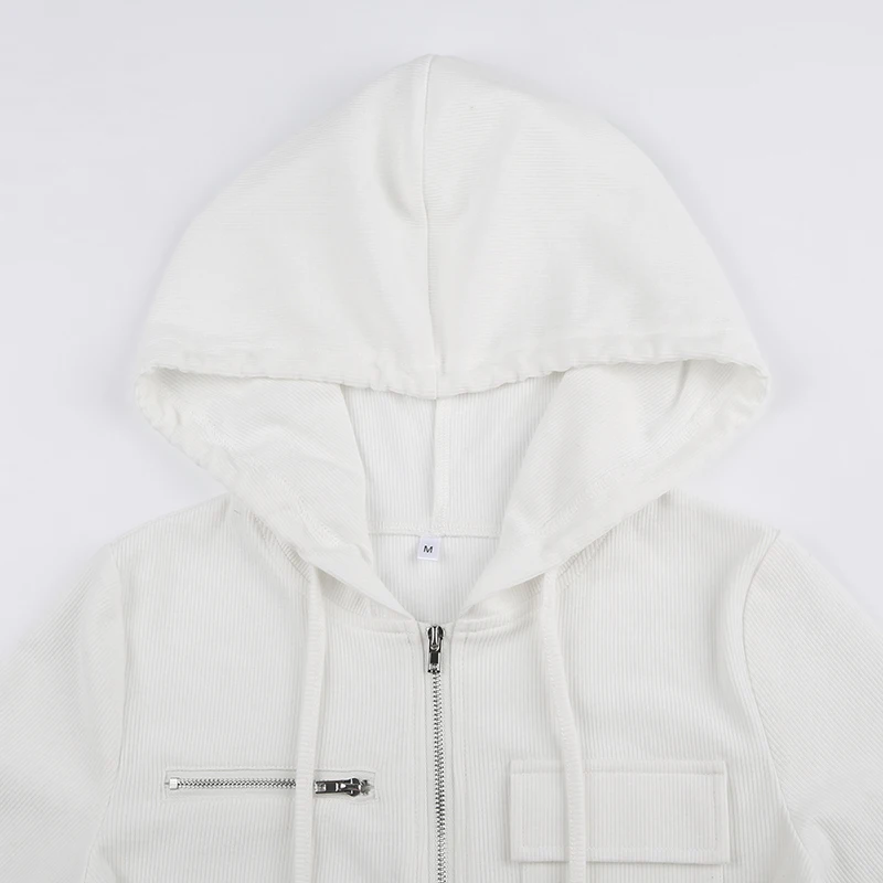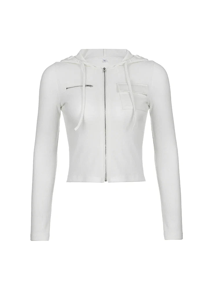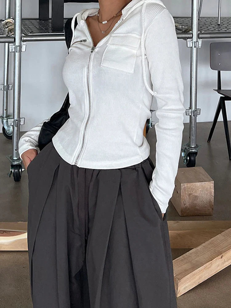 Solid Basic Casual Zipper Pocket Slim Long Sleeve Hooded Jackets Women Spring Autumn