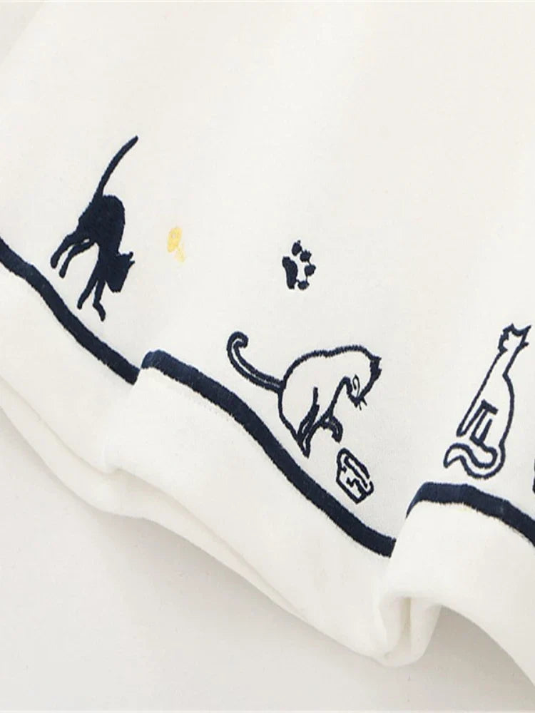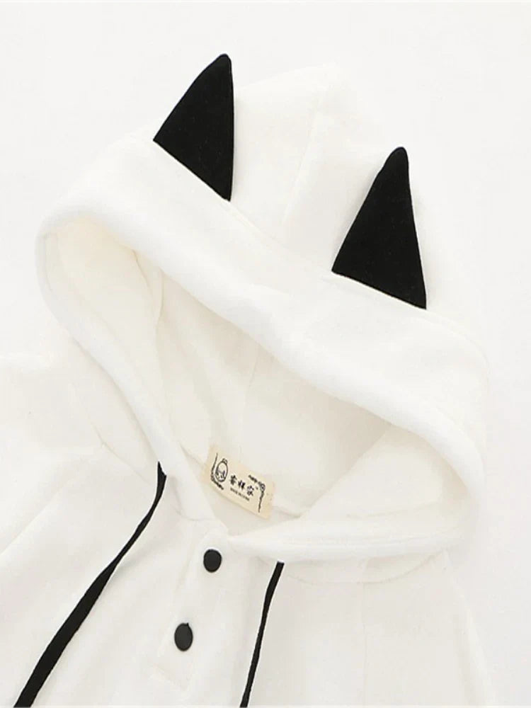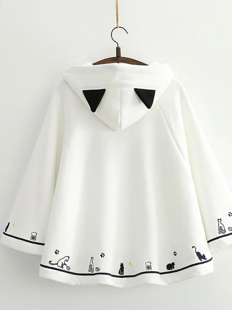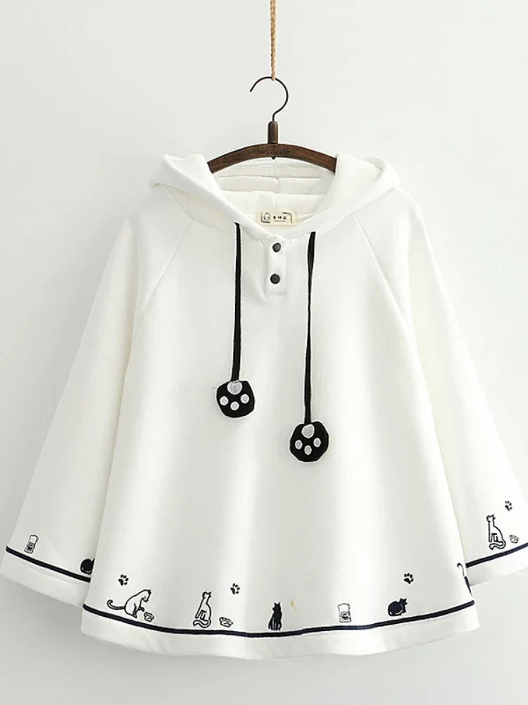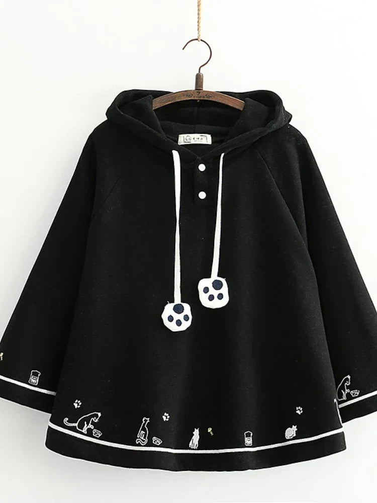 solid black cartoon cat print cute hoodies and hooded sweatshirts winter fleece thick batwing sleeve pullover Tracksuits