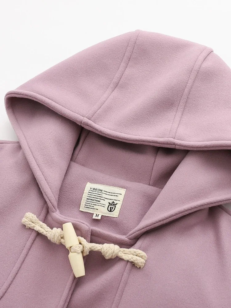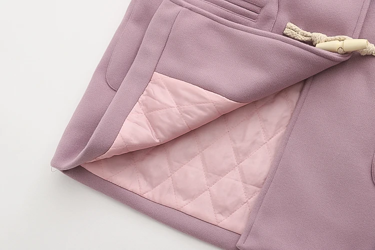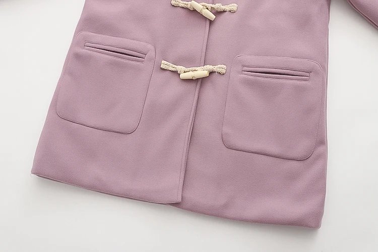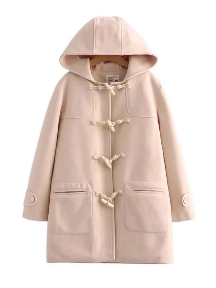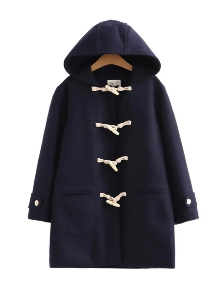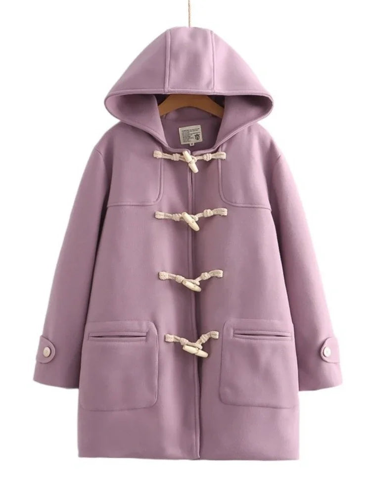 Solid Warm Women Wool Blends Long Hooded Straight Coat Jacket Winter Horn Button Casual Female Warmness Pockets Outwears