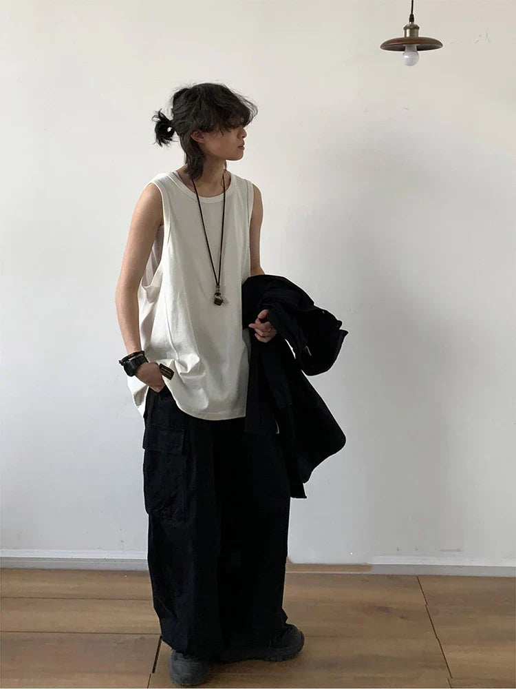 Sport Men's Tank Tops Gym Hombre Sleeveless Tee Vest Men Streetwear Loose Casual Basketball Brown O-neck Cotton