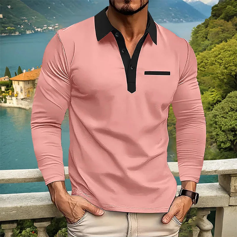 Men's Long sleeved Polo Shirt Leisure Fashion Classic V-neck Polo Shirt European and American Large Sizes