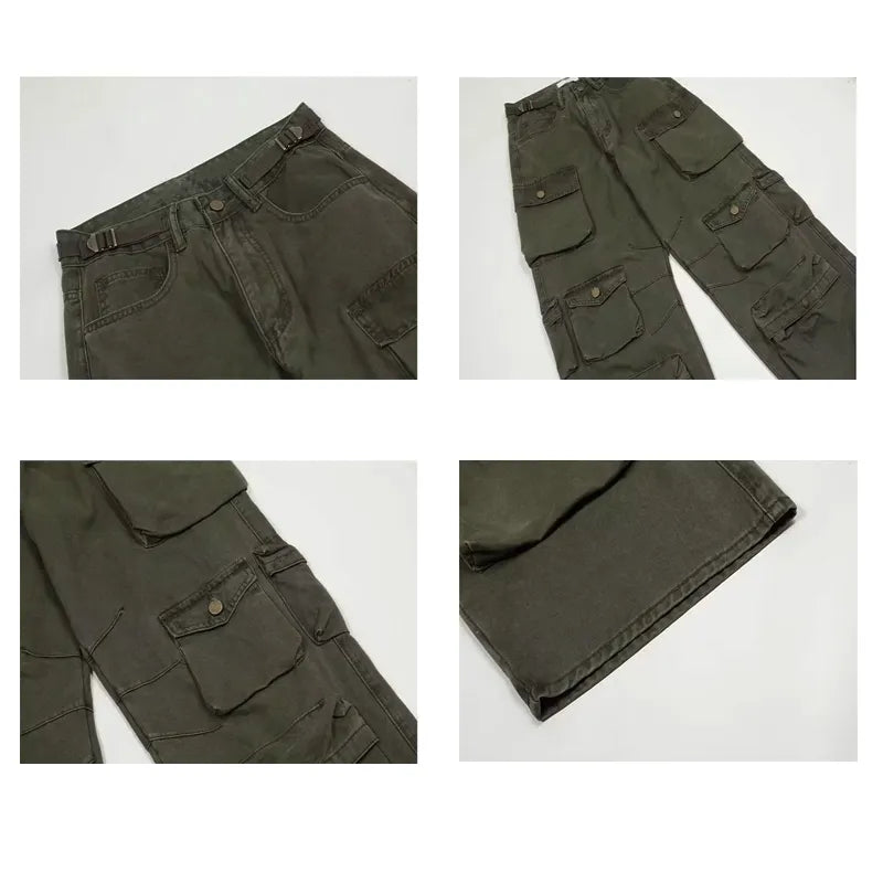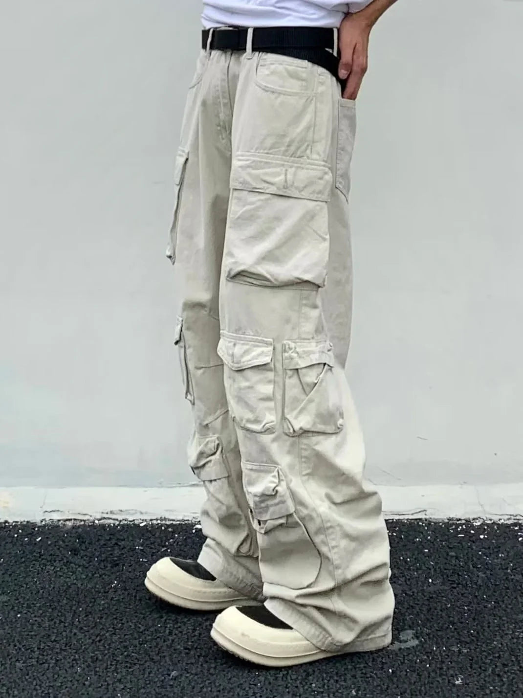 maoxiangshop Spring Cargo pants New Popular Rice White Multi-pockets Overalls Harajuku stays Men Loose Casual Trousers Straight Mopping Pants