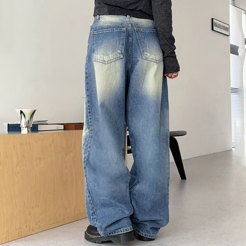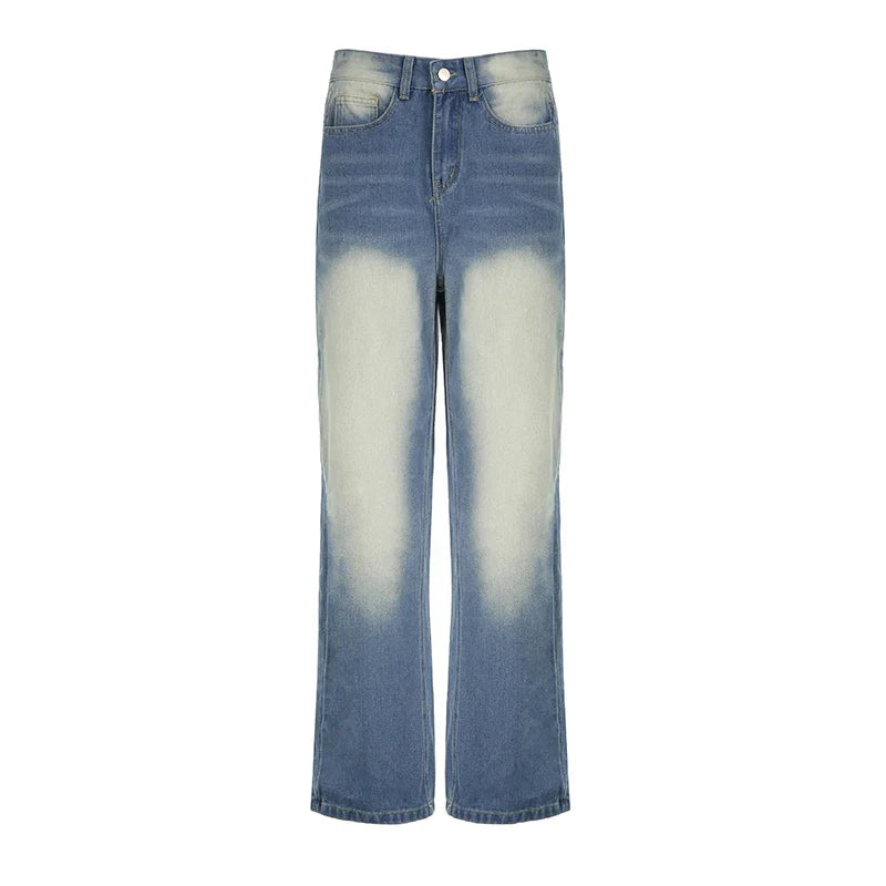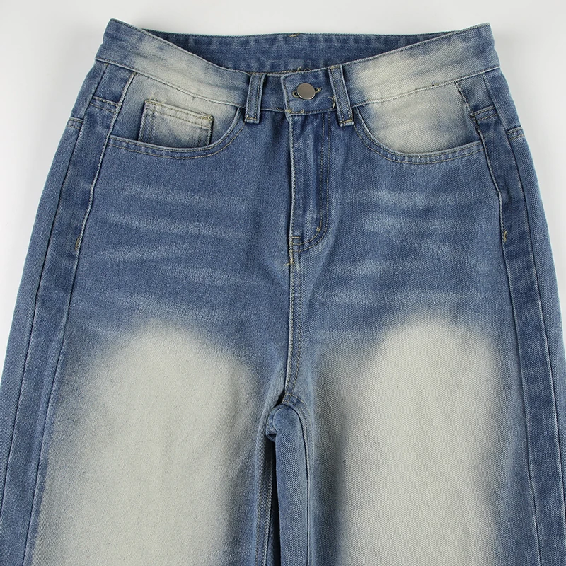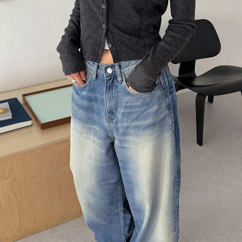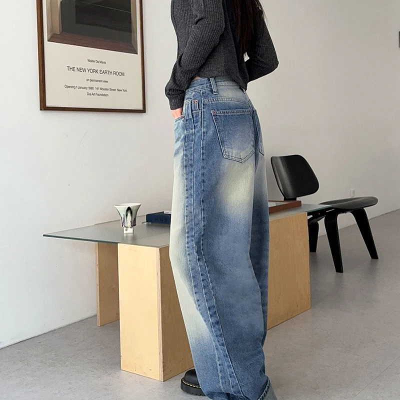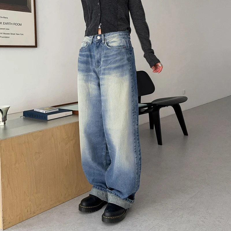 Streetwear Straight Leg Women Jeans Washed Basic Korean Fashion Denim Trousers Retro Distressed Capris Bottoms Casual