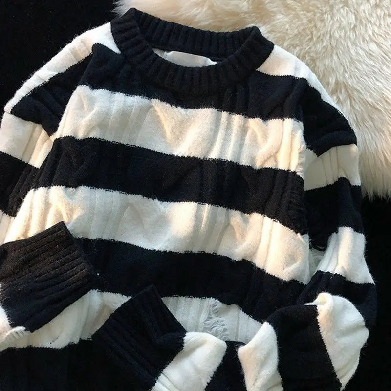 Striped Retro Couple's Sweater Men's Autumn and Winter Design Sense Niche Thread Clothing Trend Brand Ins Loose Knit Sweater