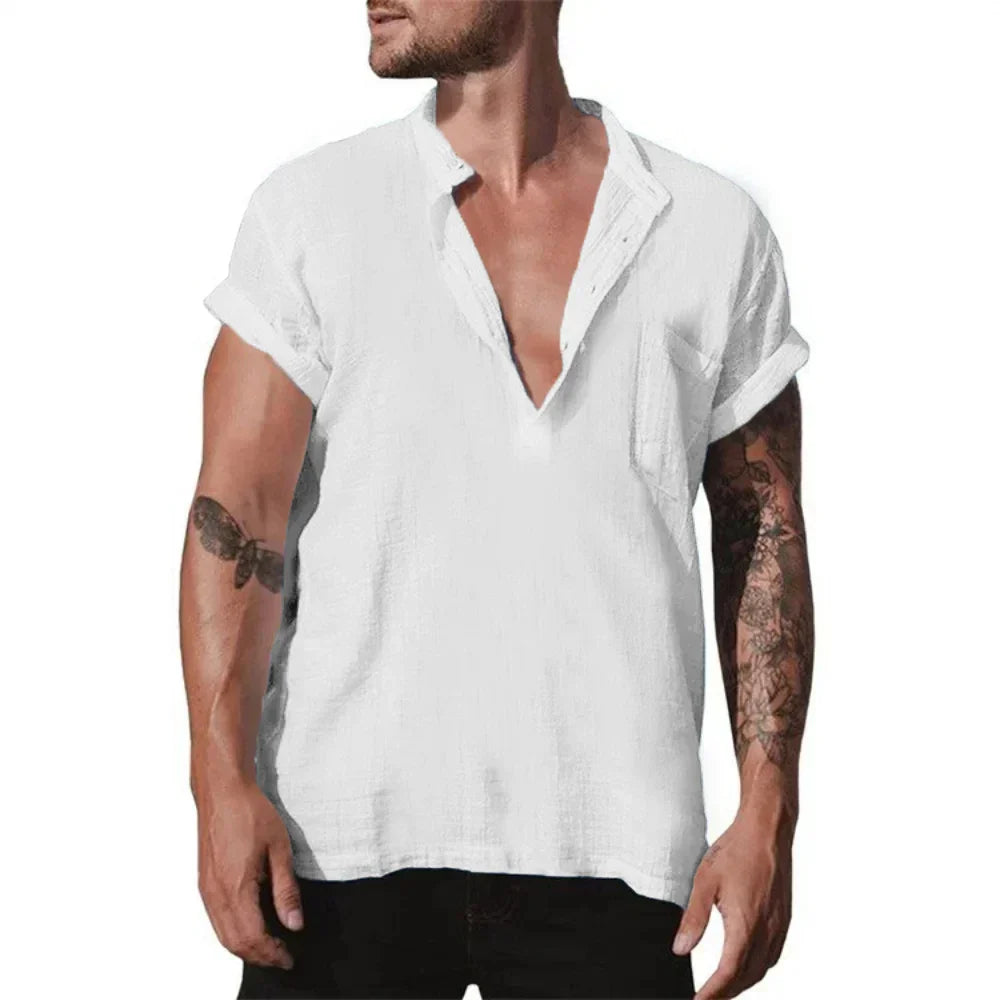 Summer Cotton Linen Casual Shirt for Men Loose Casual Breathable Men's Lightweight Large Shirt Large Size Oversized T Shirt
