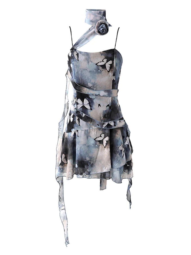 Summer Dark Academia Butterfly Y2k Dress Women Gyaru Mini Evening Coquette Sexy Hot Frocks One-Piece Party Goblin Core Prom Gown