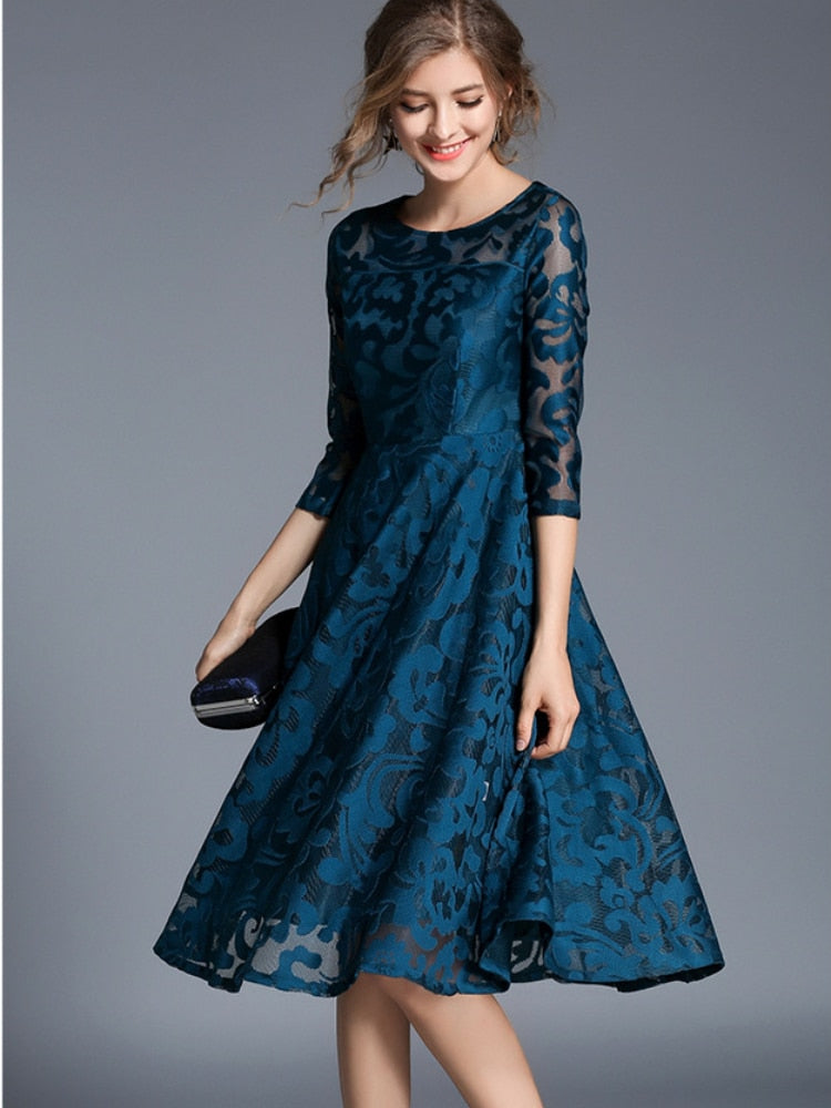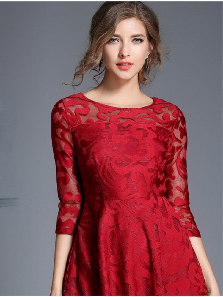 Summer Ladies Dress New Slim Fit and Slim Mid-length Lace Swing Dress Temperament Party Office Elegance Bandage Dresses