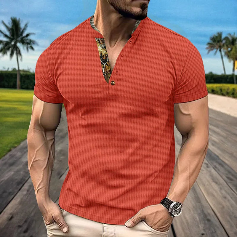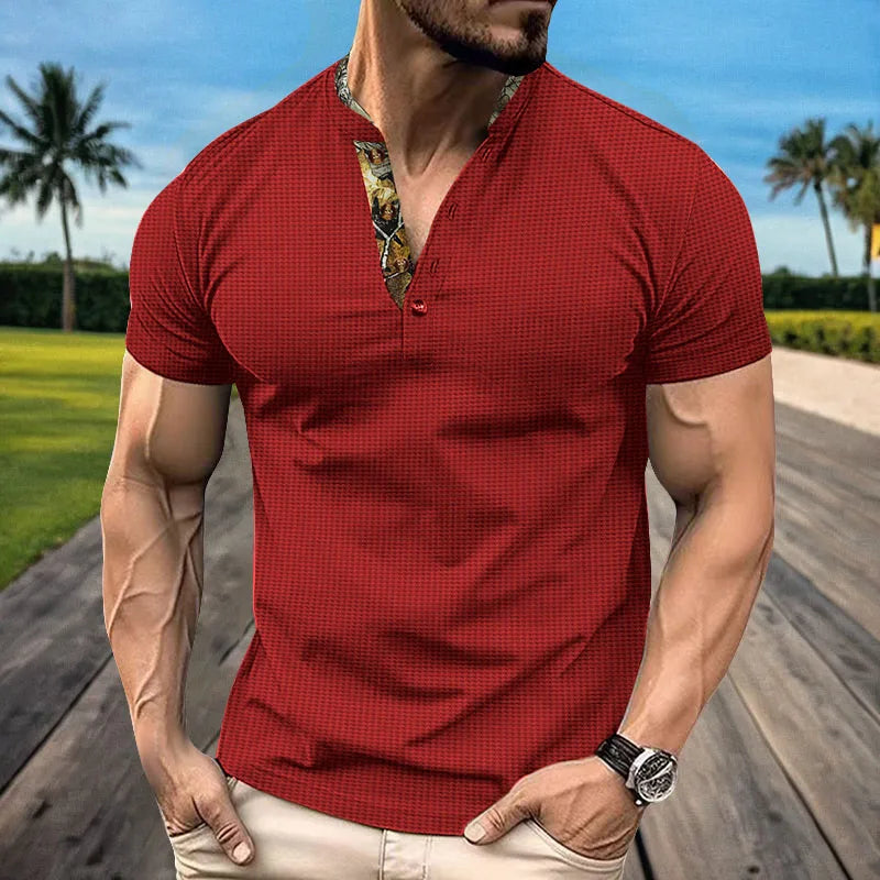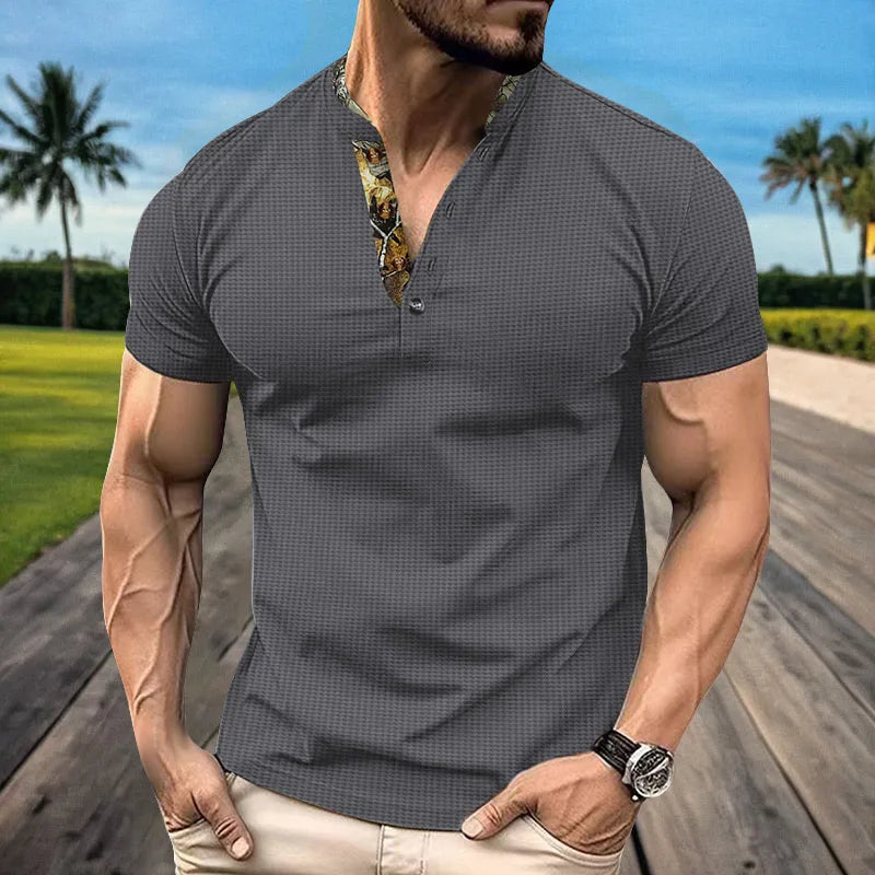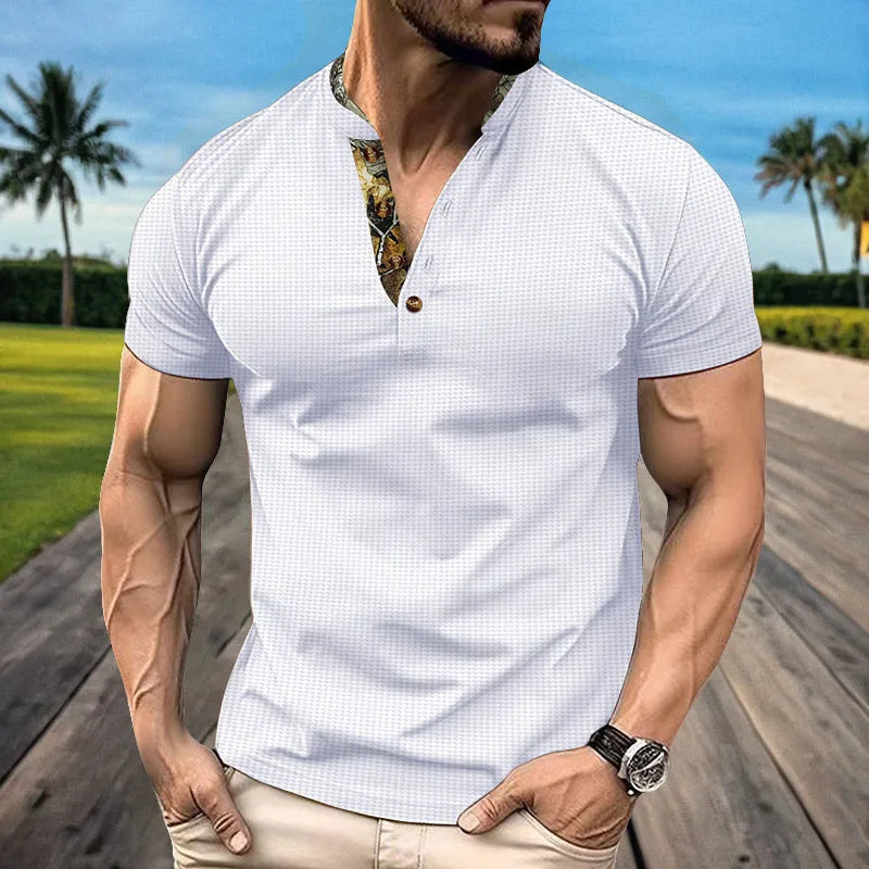 Summer Men's POLO Shirt Daily Casual Waffle Pattern High-quality Fashionable Short Sleeved Men's Standing Neck T-shirt