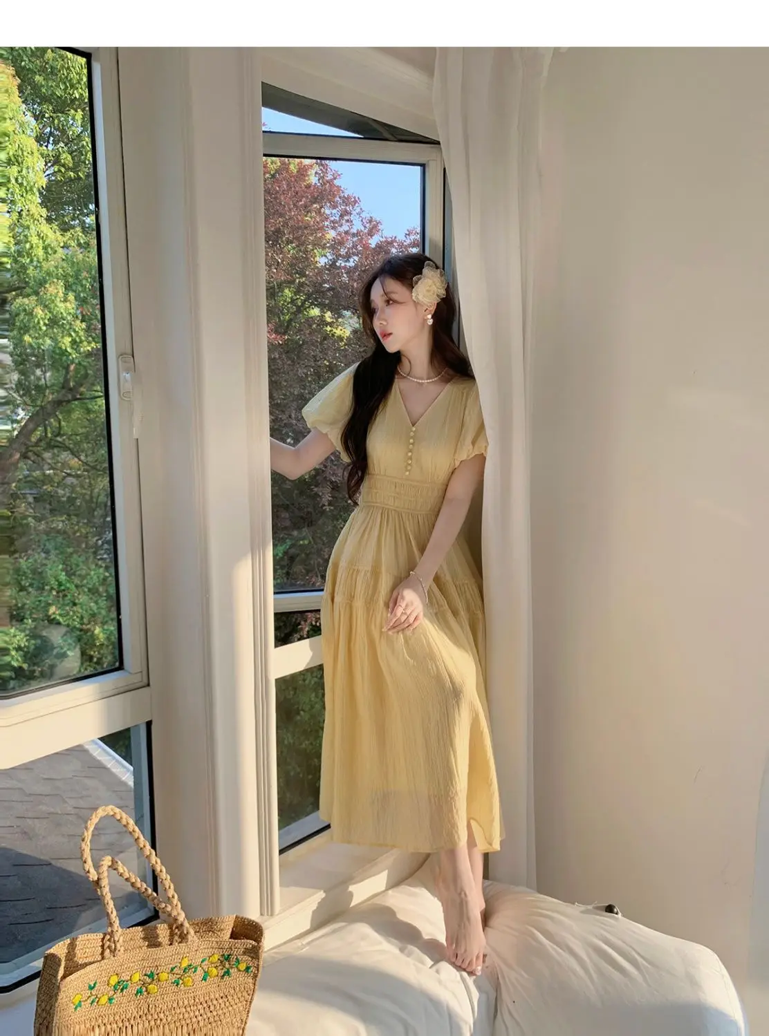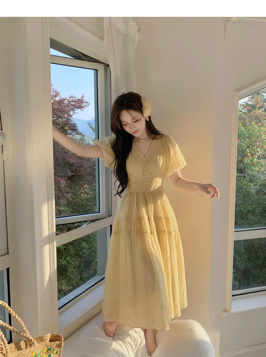 Summer New Elegant Midi Dress Woman One Piece Chic Holiday Lady Fashion Party Vestidos Clothing