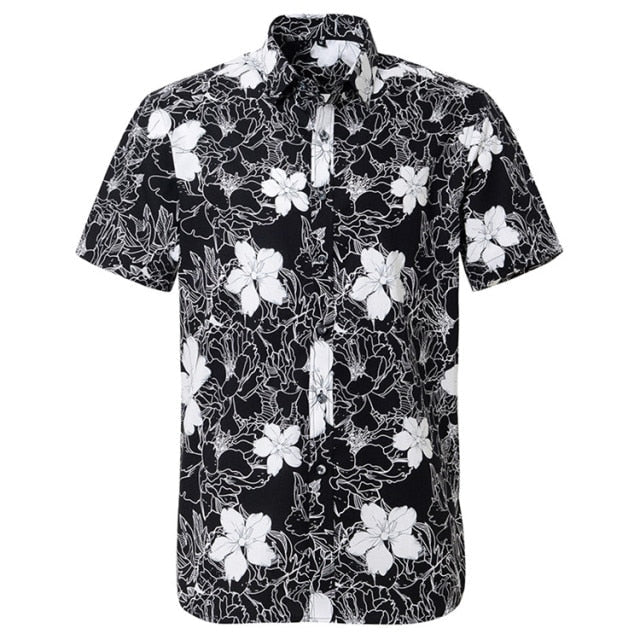 maoxiangshop Summer Pure Cotton Mens Hawaiian Shirt Printed Short Sleeve Big Us Size Hawaii Flower Beach Floral Patterns