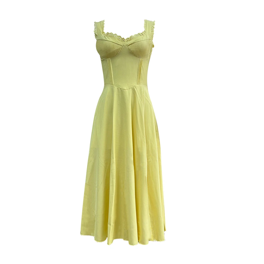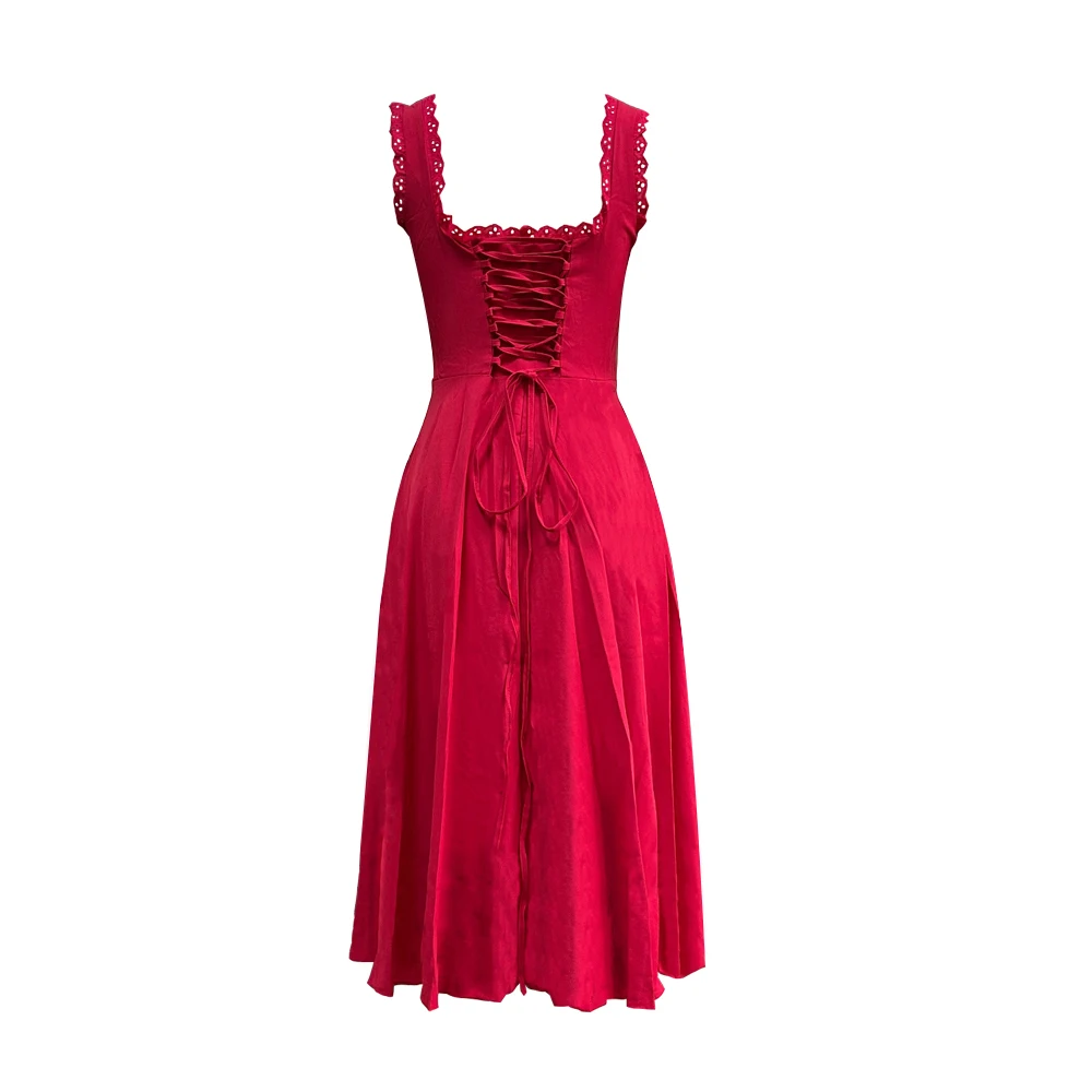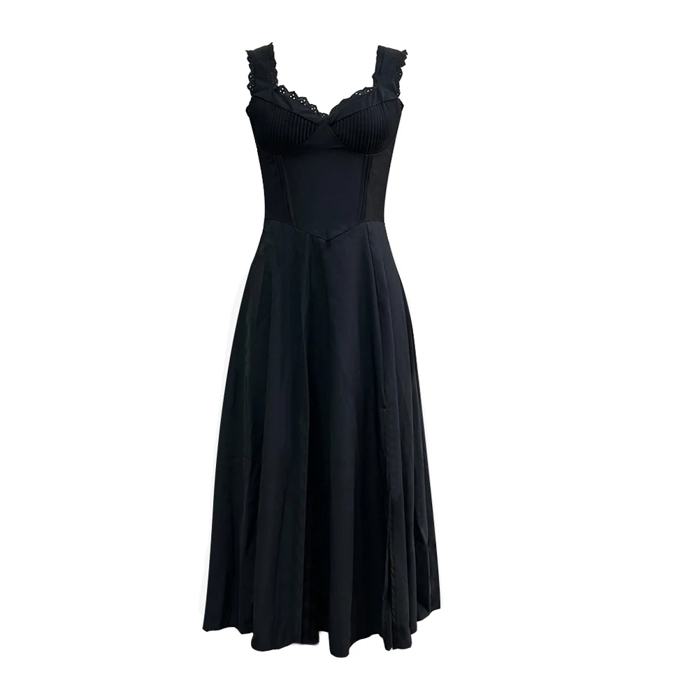 Summer Elegant Lace Up Black Dress Long A Line Midi Party Dress Casual Double Layer Women Dress New Arrivals