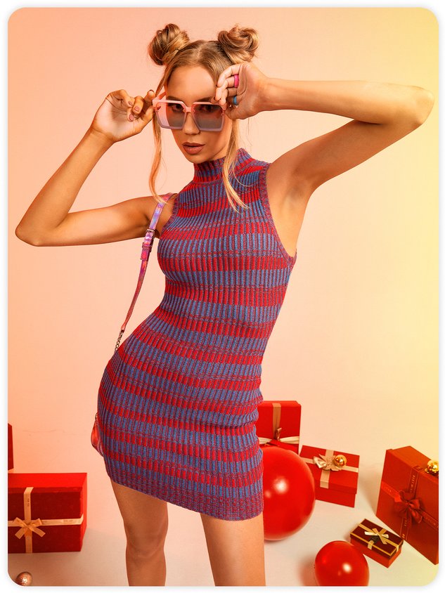 Y2K Sweet Purple Striped Slim Dress Mini Dress