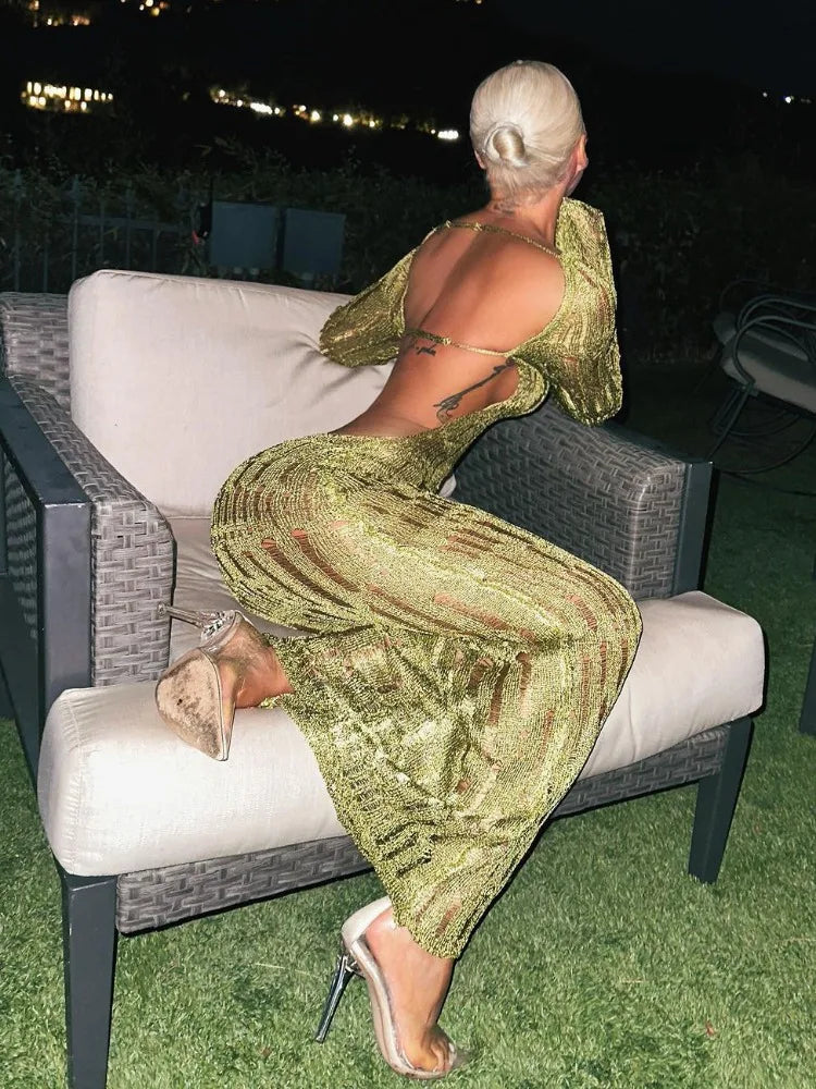 See Through Backless Sexy Dress For Women Summer Hollow Out Kintted Maxi Dresses Femme Club Fashion Solid Vestido Woman