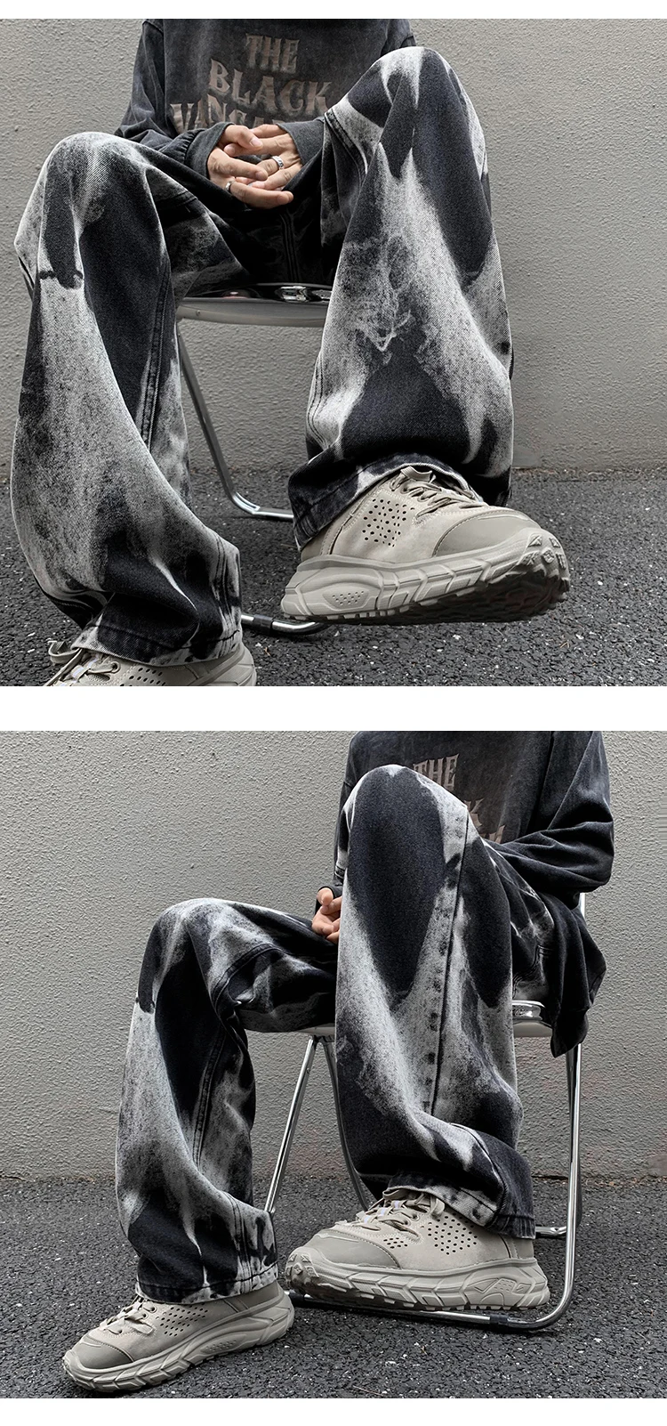 maoxiangshop Tie-dye Jeans Men High Street Straight Denim Pants Men Baggy Fashion Trend Jean Pants Mens Wide-leg Trousers BF Clothing