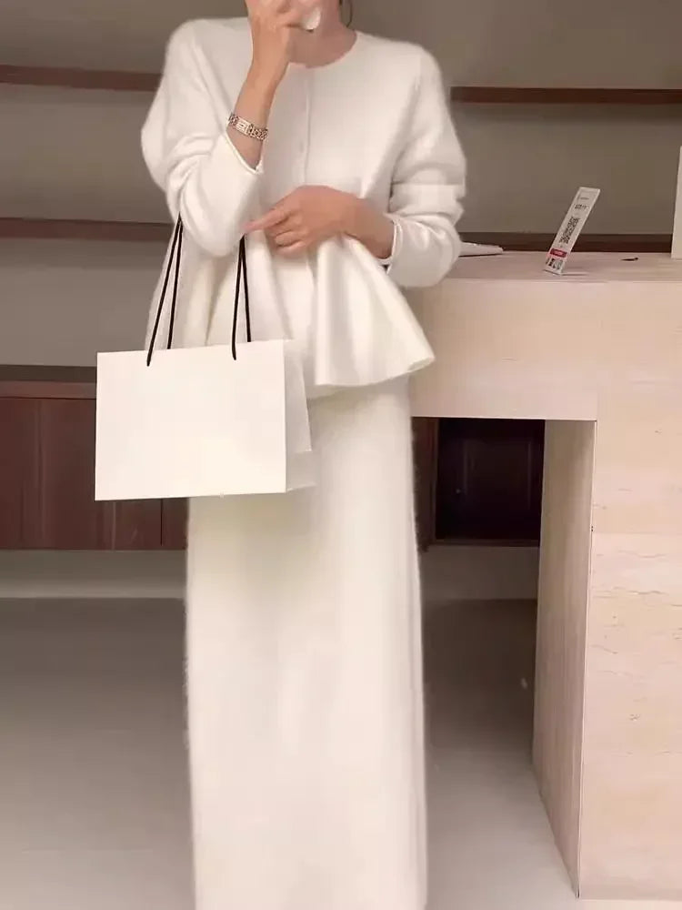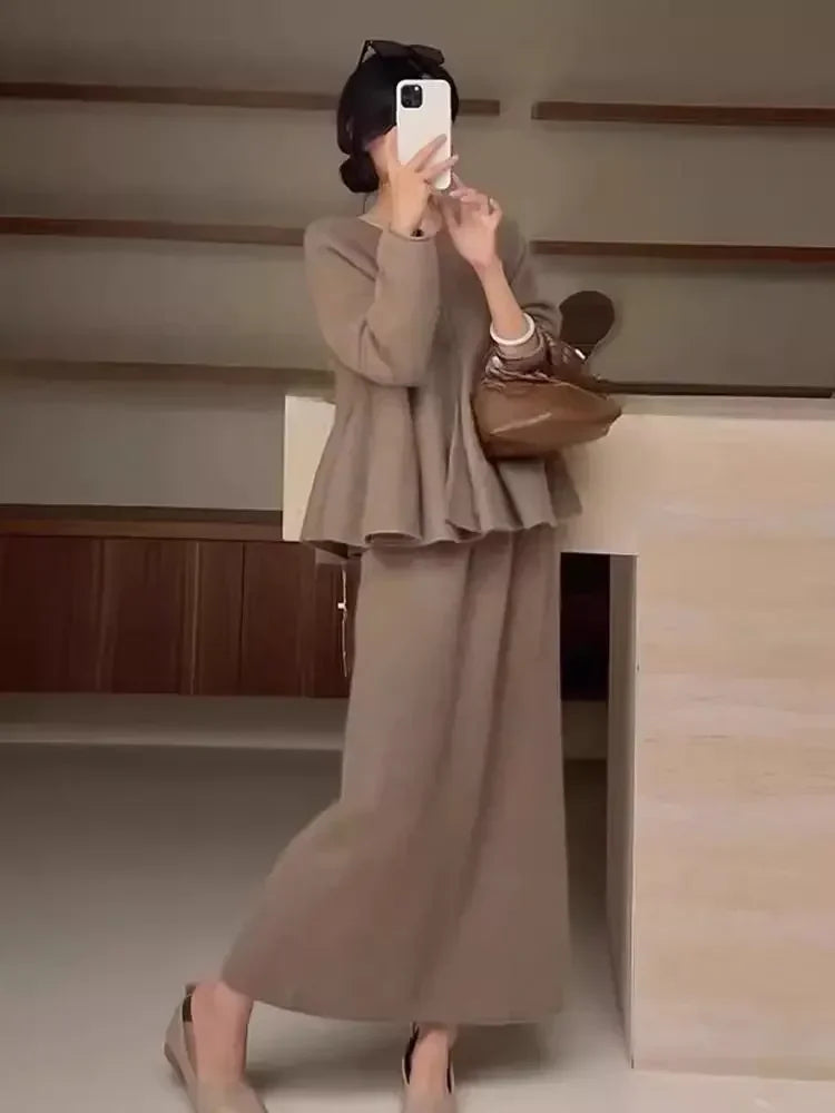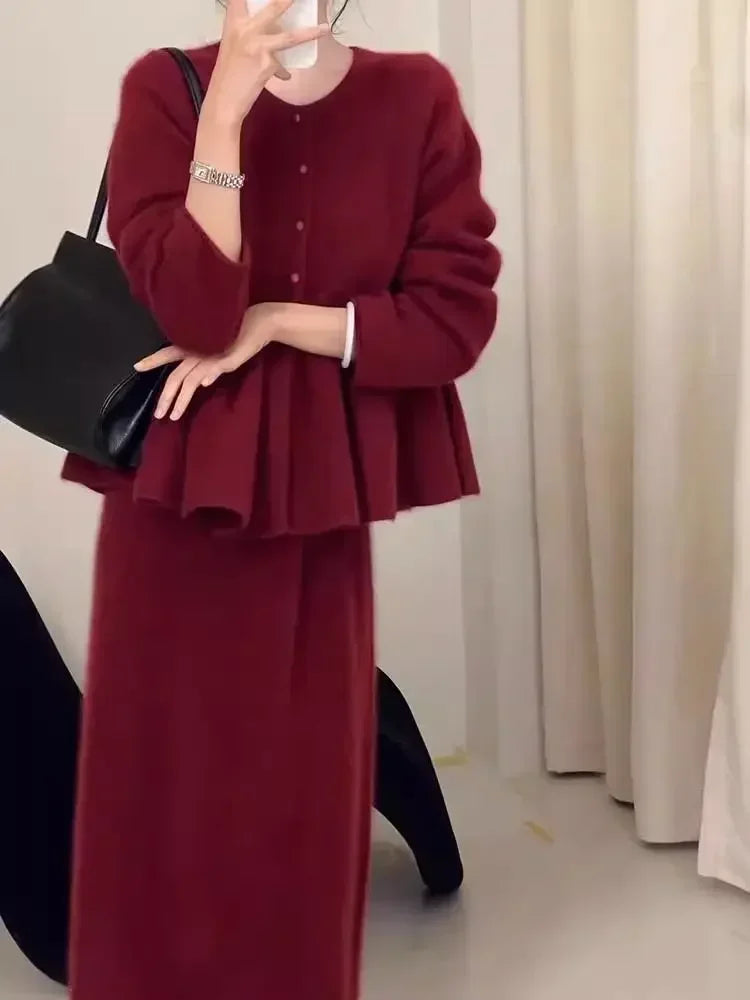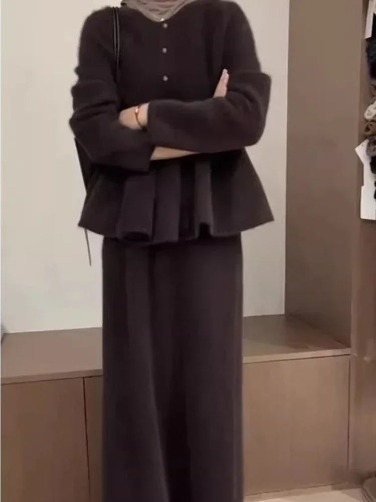 Two Piece Sets Womens Outifits Autumn Winter Solid Single Breasted Knitted Cardigan Sweater Top A-line Skirt Sets Women Clothing