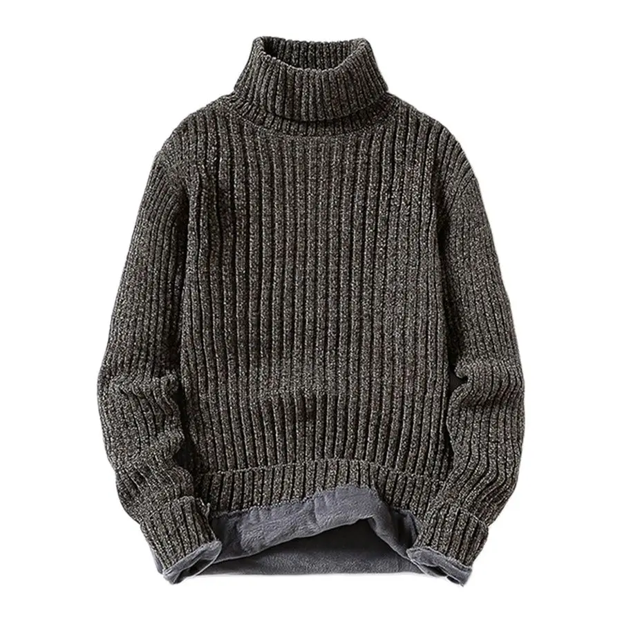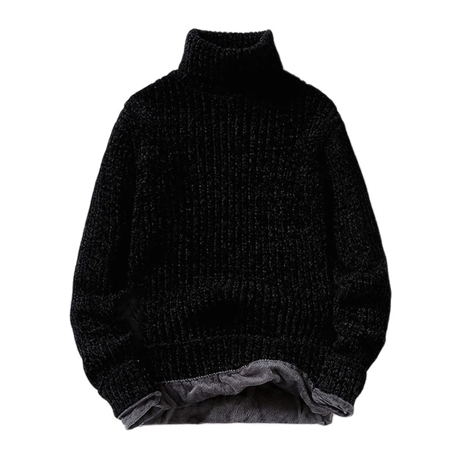 maoxiangshop Winter Fleece Turtleneck Sweaters Men Fashion Slim Fit Knitted Pullovers Mens Solid Color Casual Sweaters Male Warm Knitwear