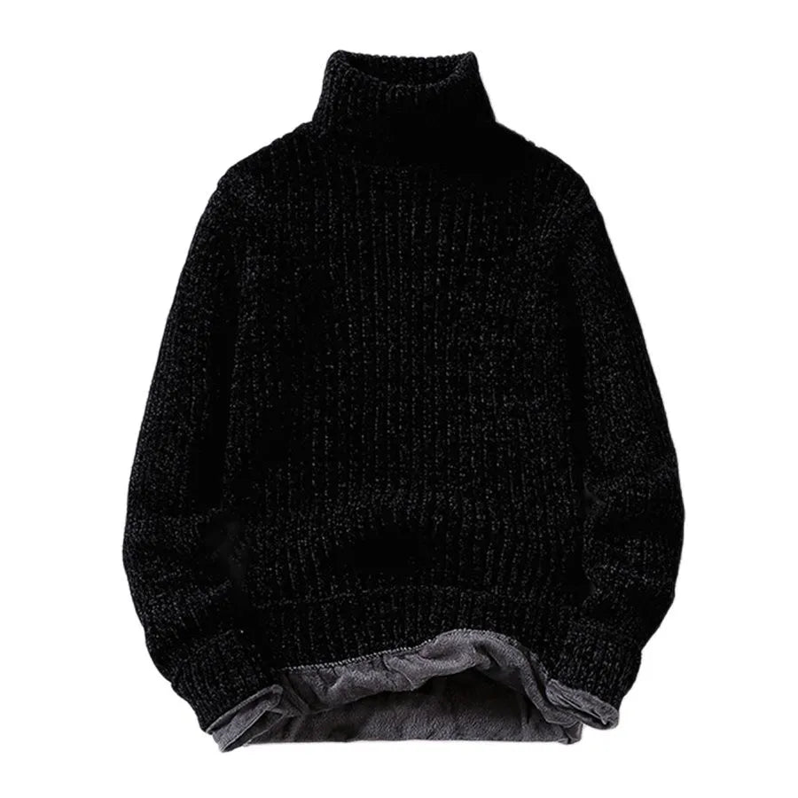 maoxiangshop Winter Fleece Turtleneck Sweaters Men Fashion Slim Fit Knitted Pullovers Mens Solid Color Casual Sweaters Male Warm Knitwear