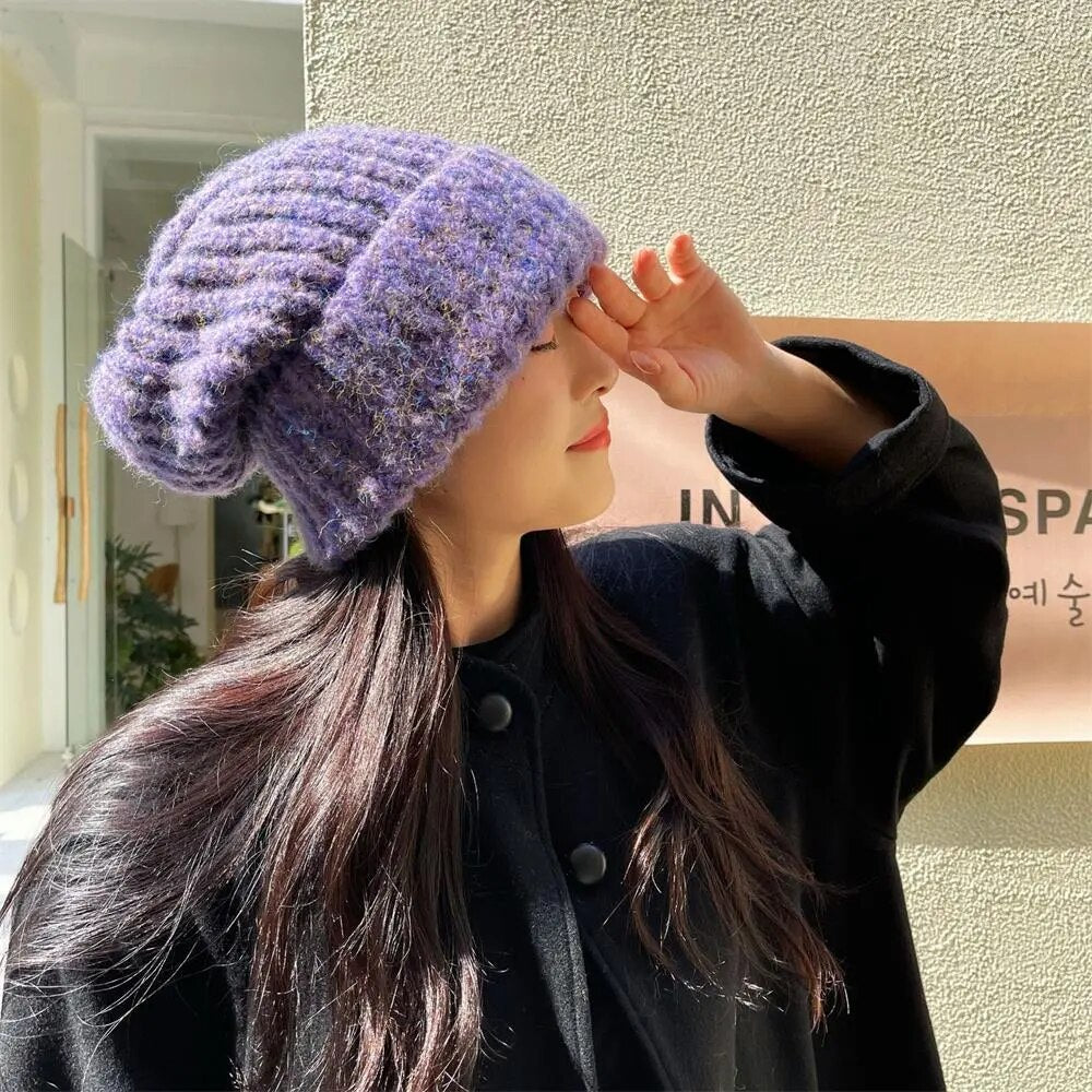 maoxiangshop Winter Unisex Wool Hat Loose Big Head Circumference Knitted Hats Women's Korean Warm Oversized Skullies Beanies Christmas Gift