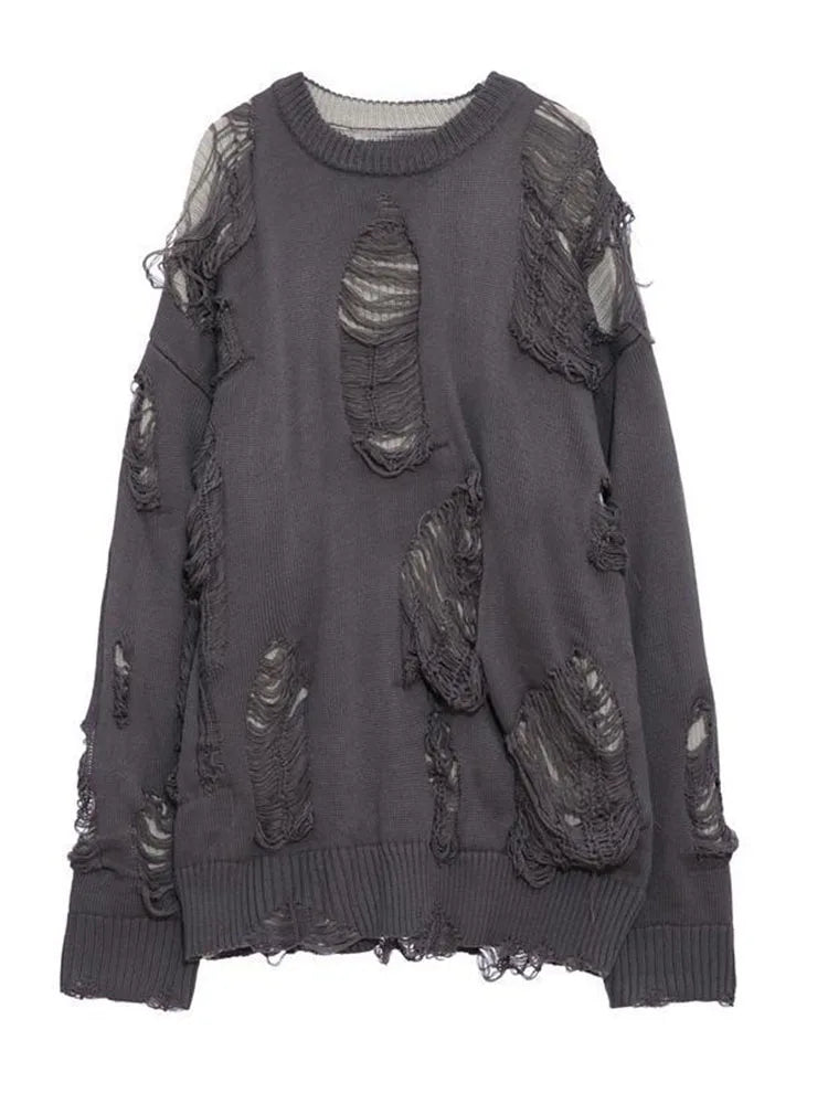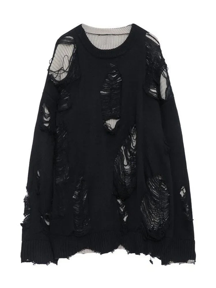 Woman Fall Winter Knit Top Baddie Style O-Neck Sweaters Long Sleeve Harajuku Fashion Ripped Pullovers Grunge Loose Streetwear
