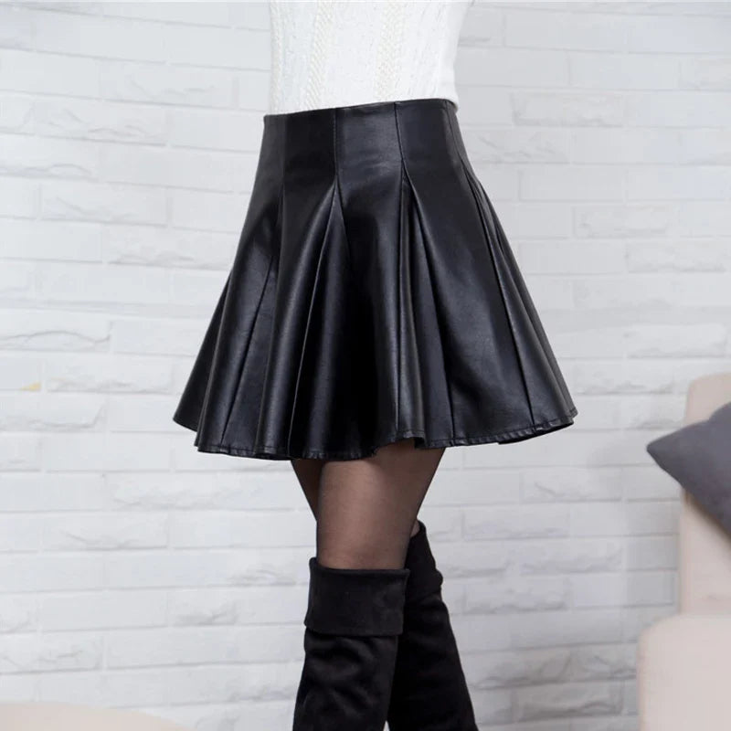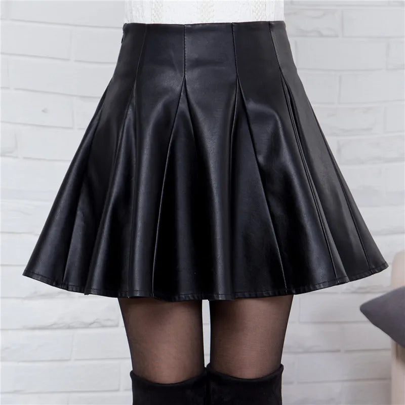 maoxiangshop Women Black Pu Leather Skirt Fashion Casual Mini Skirts Y2k Female Korean Style High Waist Short Skirt Winter Solid Bottoms